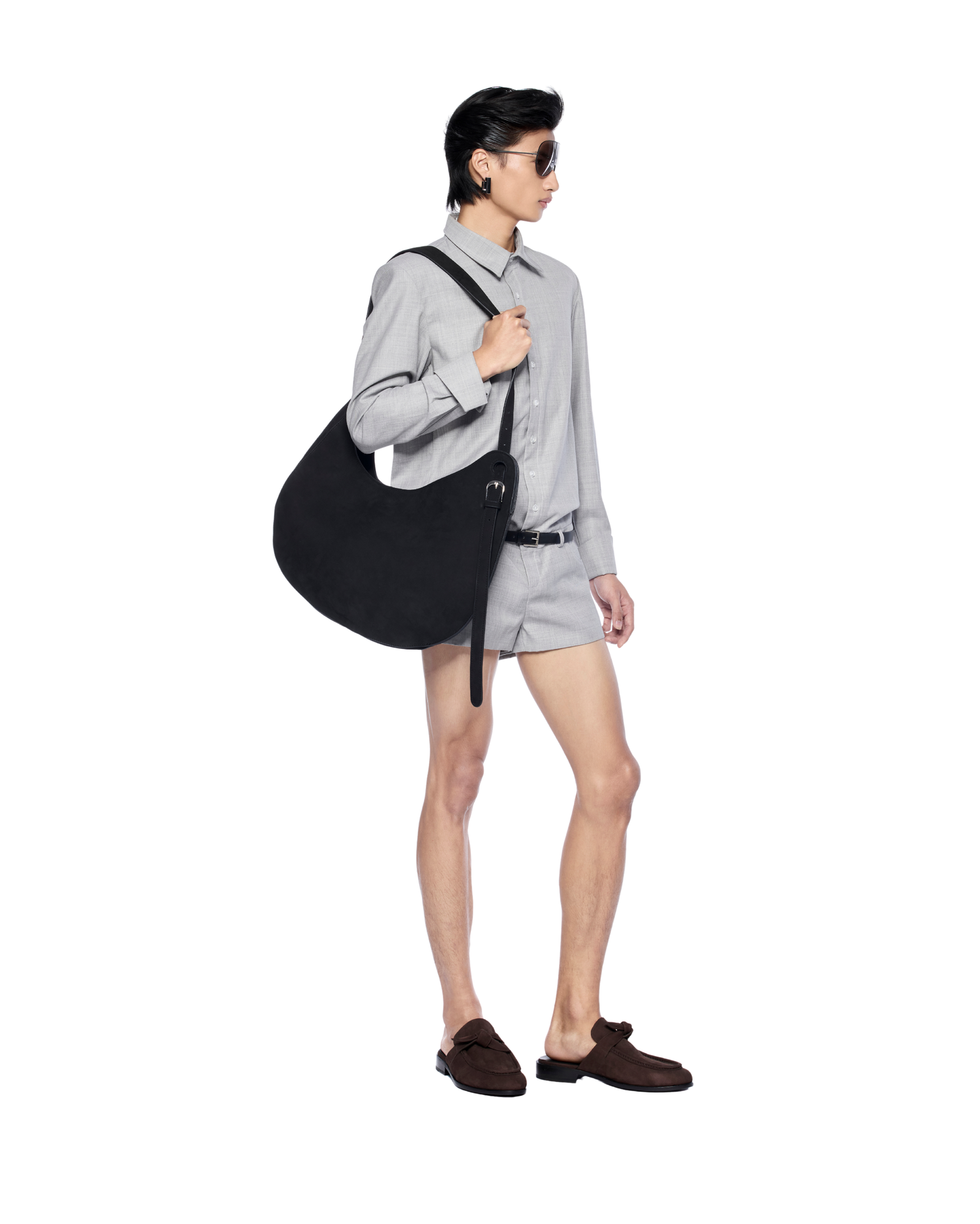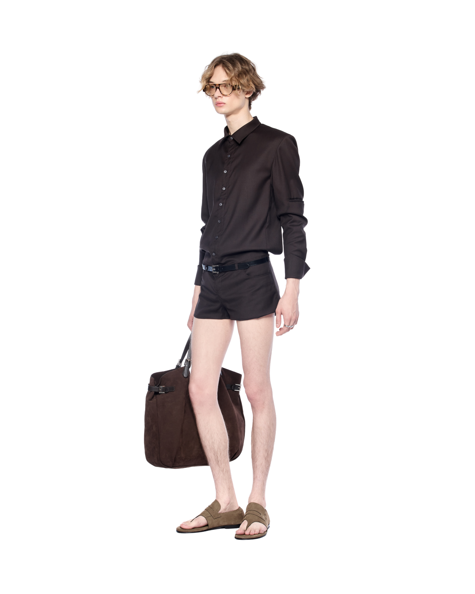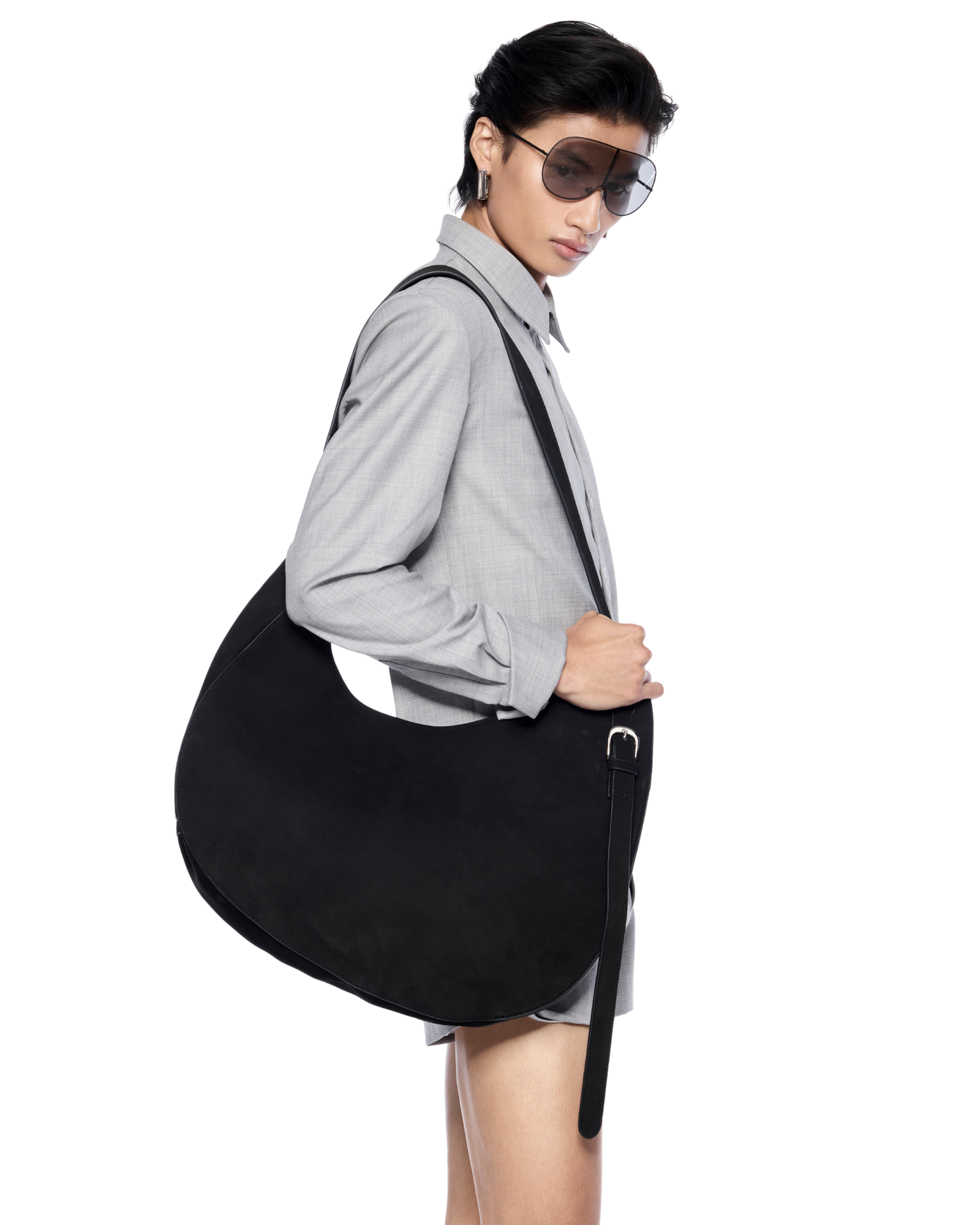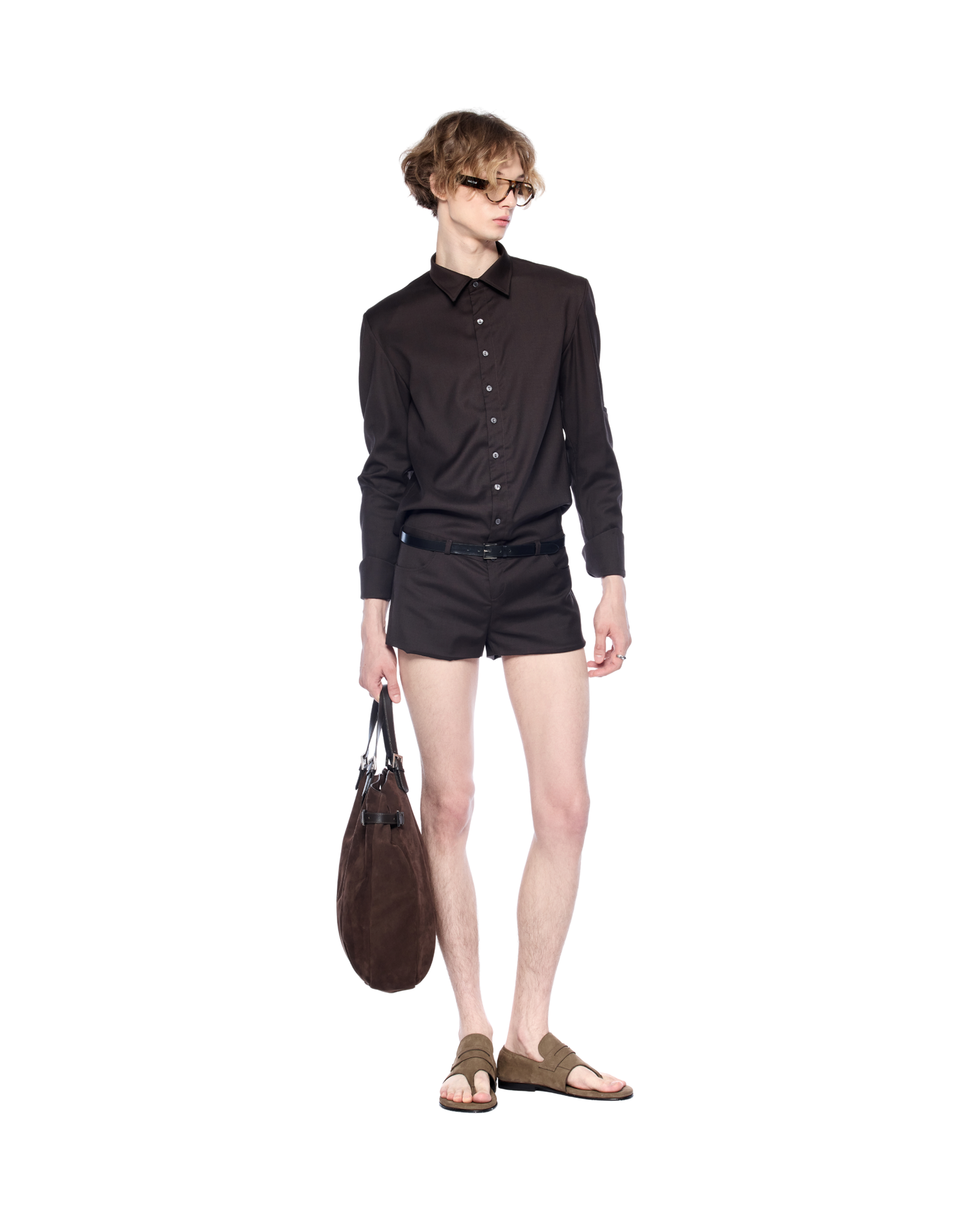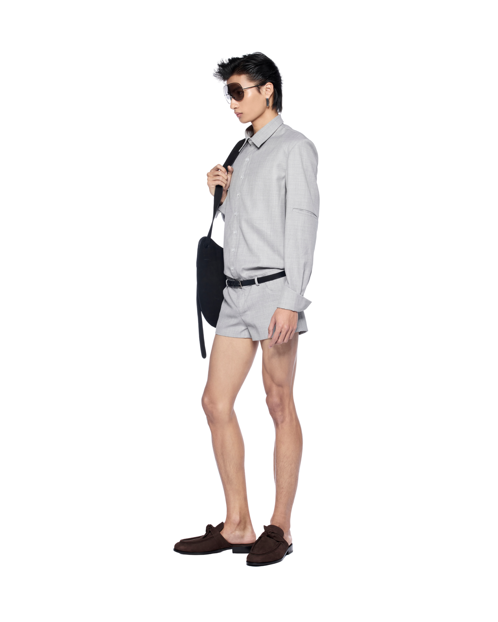 Shirt-style bodysuit reimagined with an open-back cut. It creates a sharp yet playful silhouette. Works well with a structured bag and statement belt