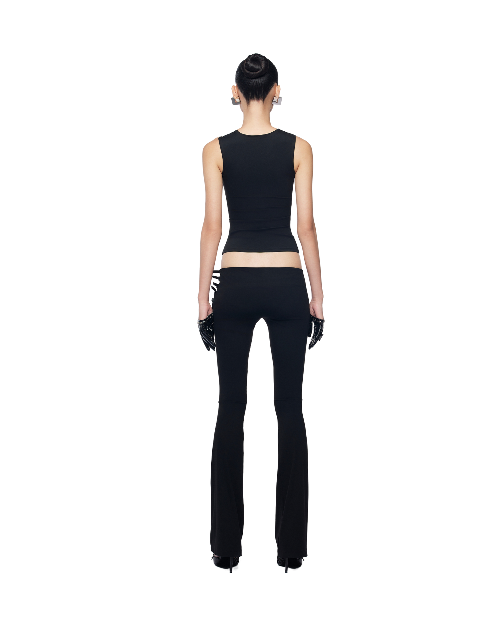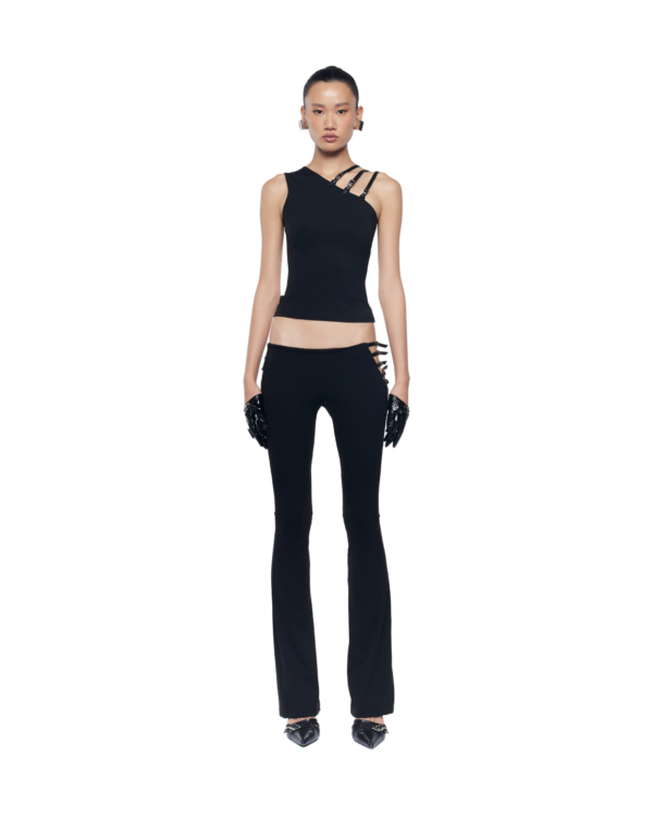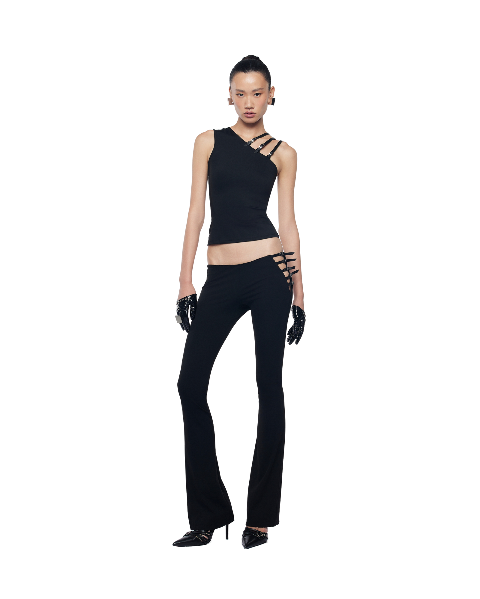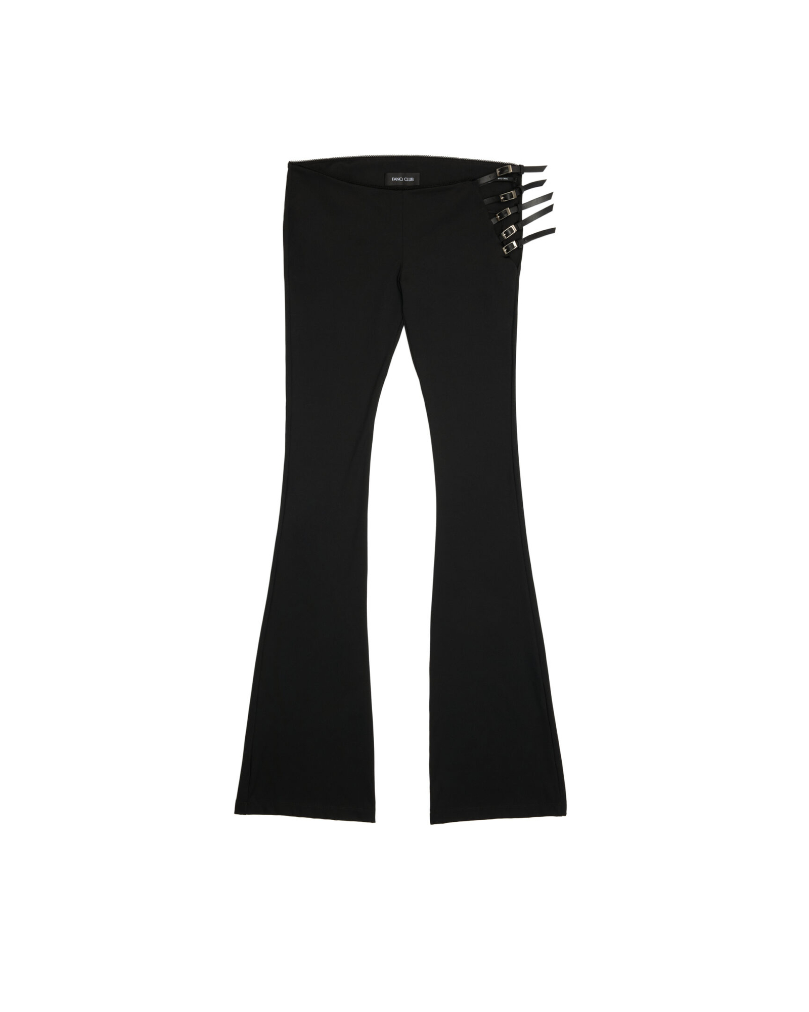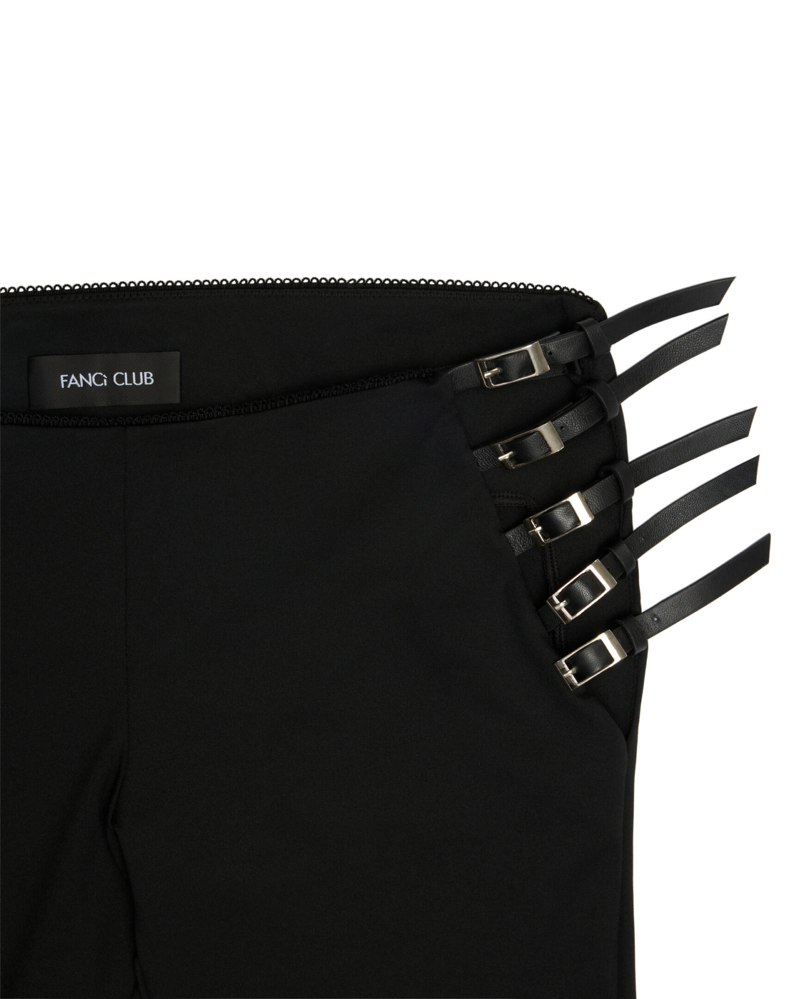 Flared leggings with buckle closure Leopard printed buckle closure Cutout