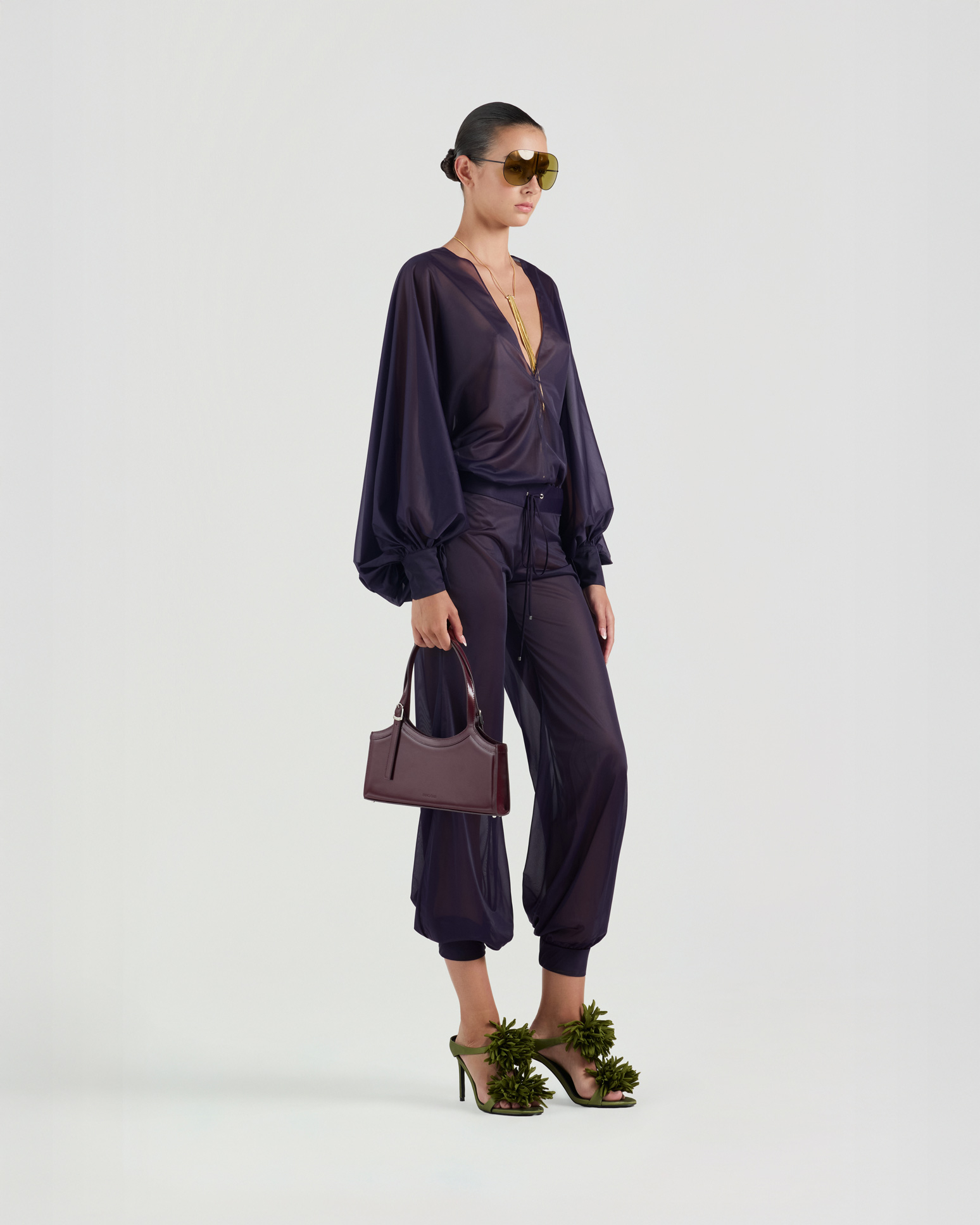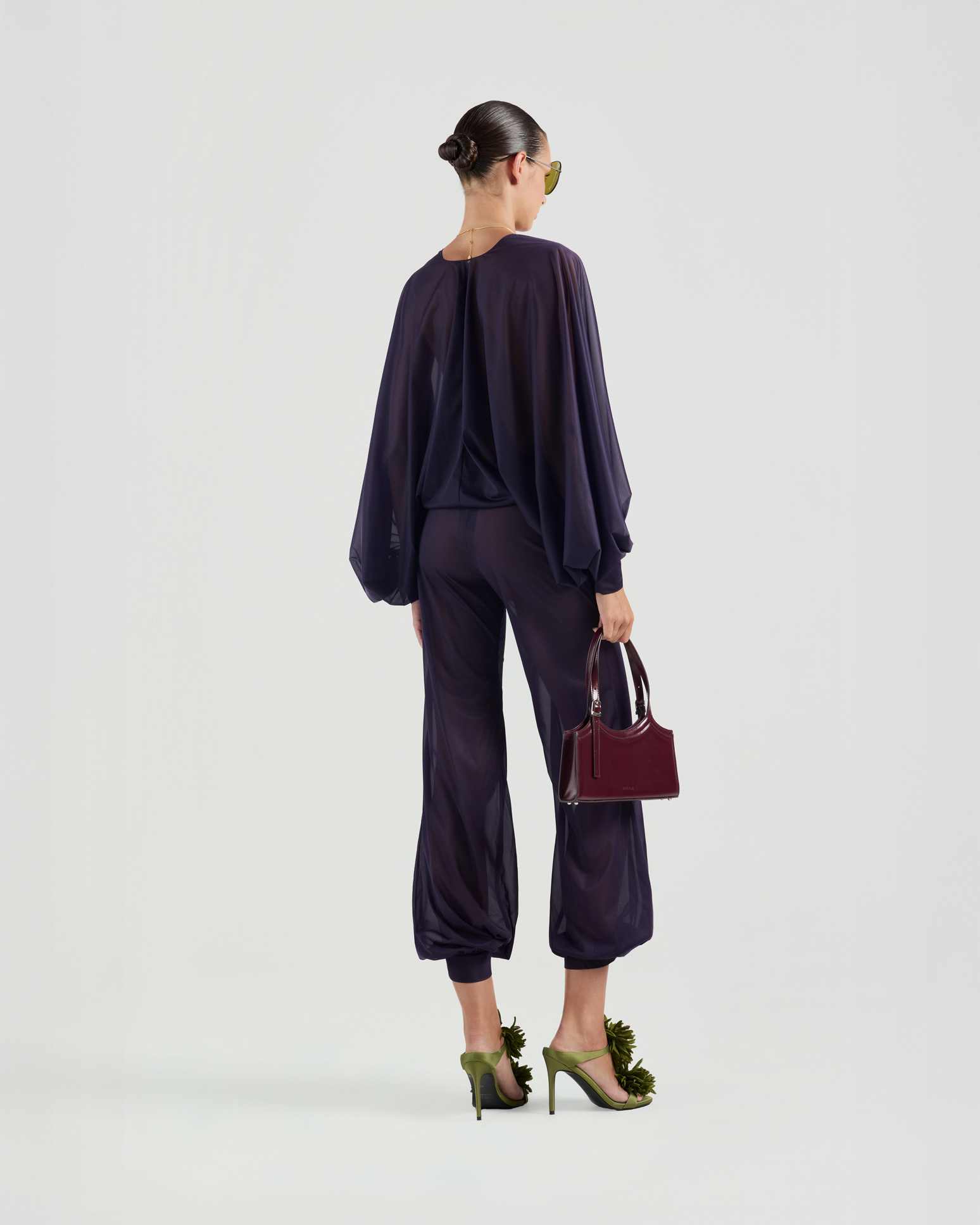Rendered in sheer chiffon, these relaxed-fit pants offer a lightweight, fluid feel with soft movement. The elasticized waistband with drawstring allows for an adjustable fit, enhancing everyday comfort.