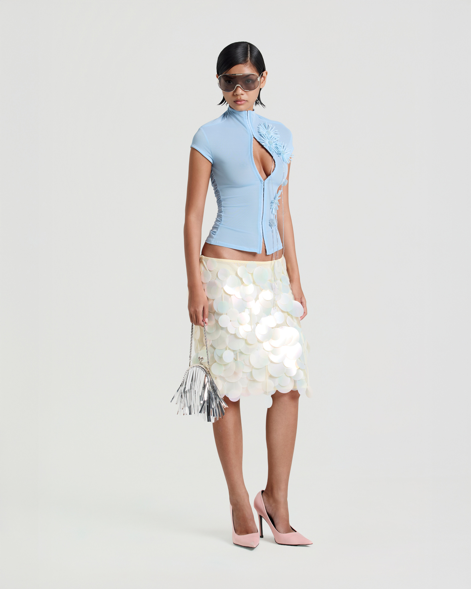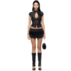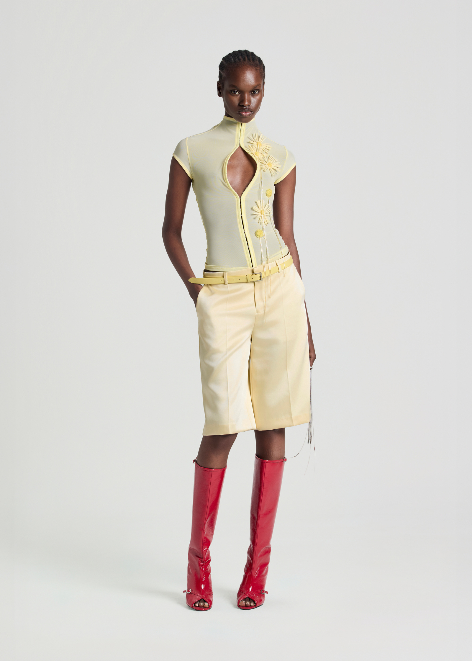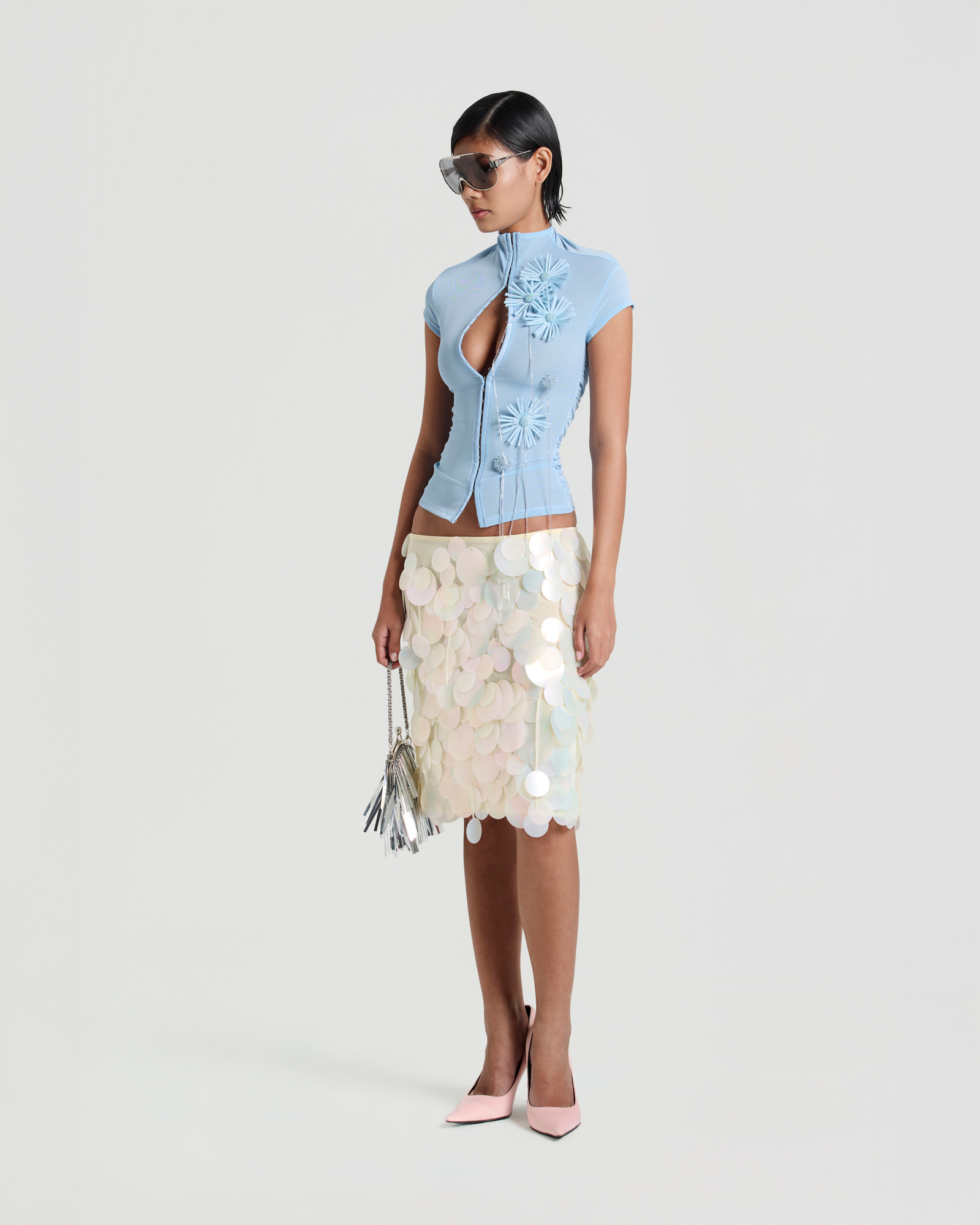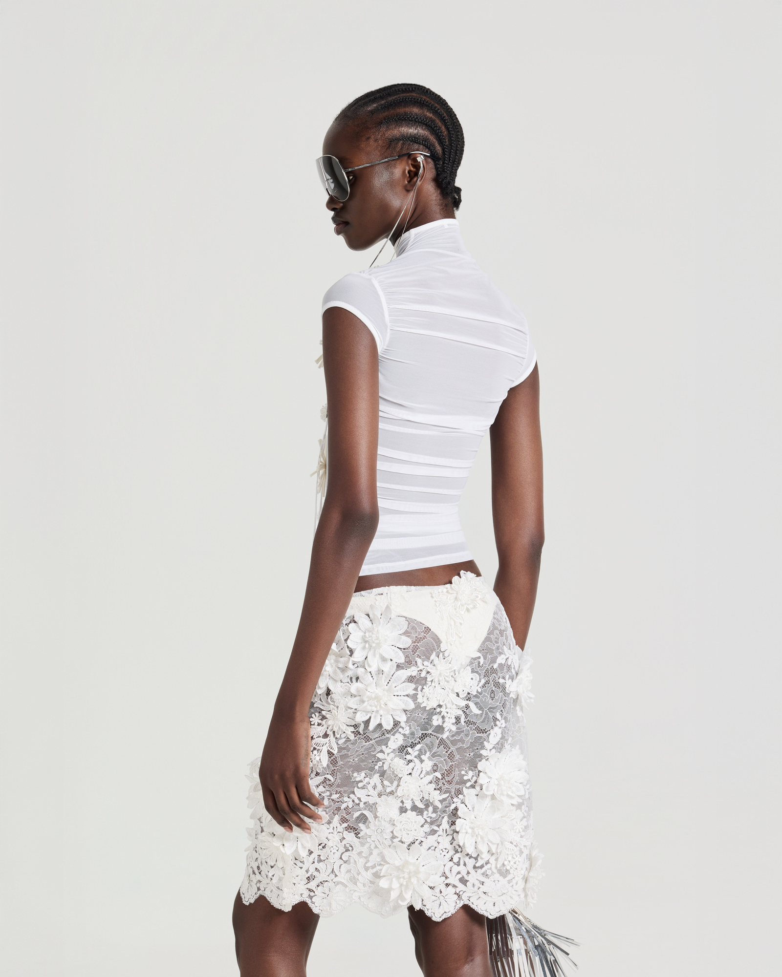 Mock neck mesh top with flower