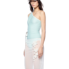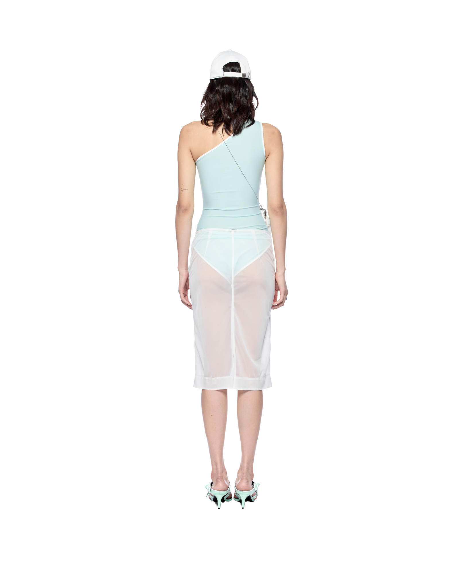A jersey one-shoulder bodysuit with contrasting piping, designed to hug the body and highlight the shoulders with its asymmetrical cut. Perfectly paired with a sheer midi skirt, low-rise trousers, or a small tote for a modern, striking look.