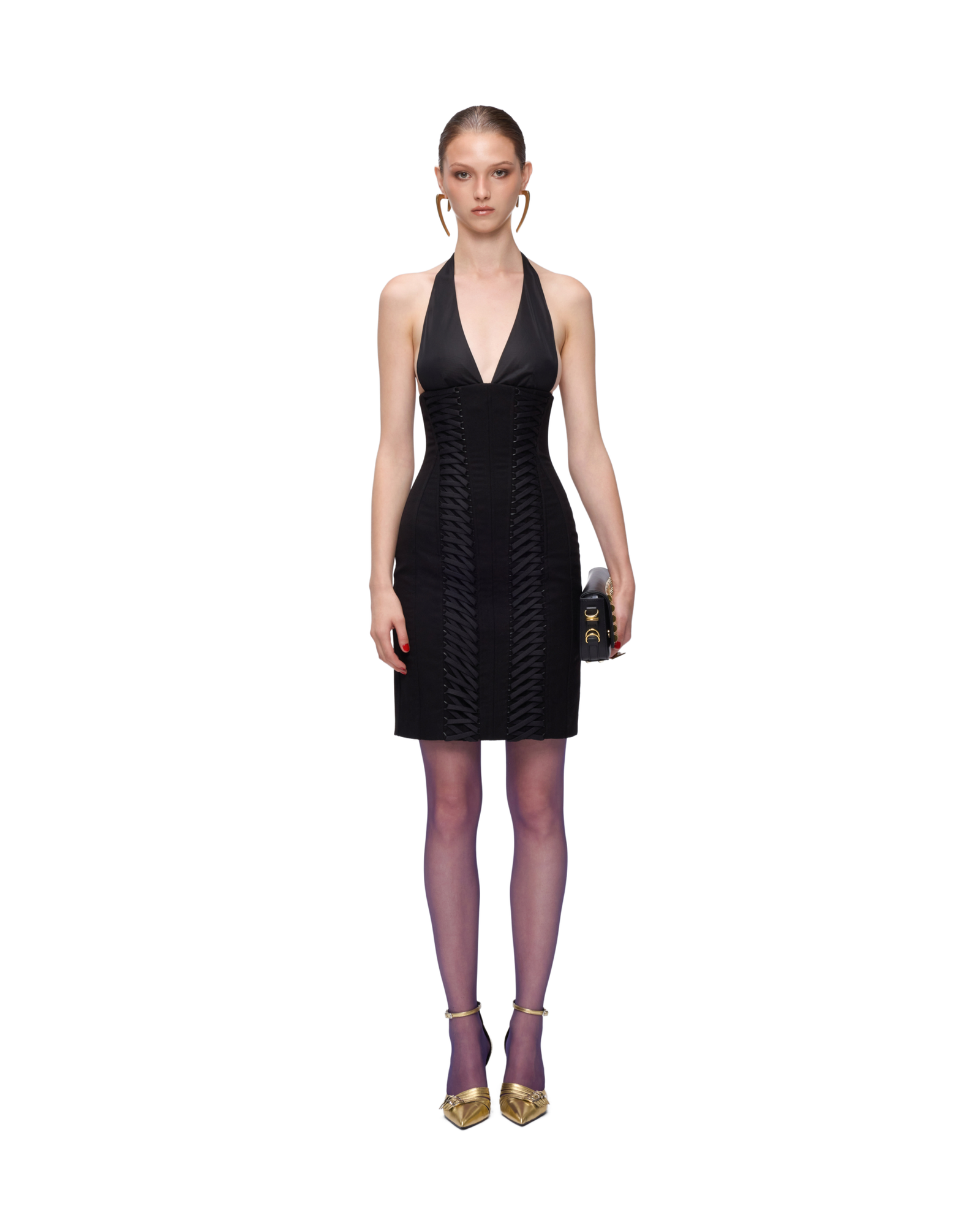 Double lace-up panels at front and back Fitted Self-tied neck Back zip closure
