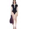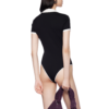 Polo-styled bodysuit Peter-pan collar Buttoned front placket Contrasting piping Short-sleeve