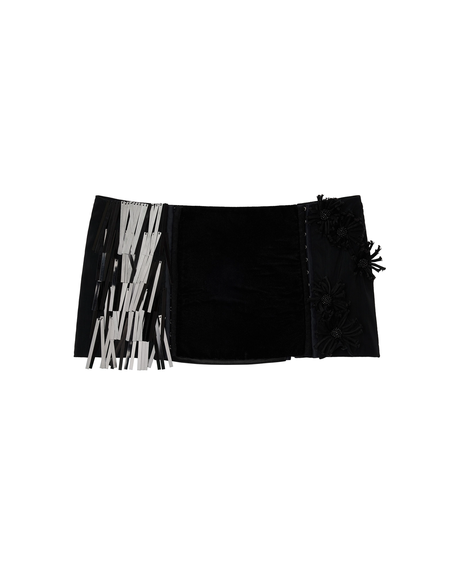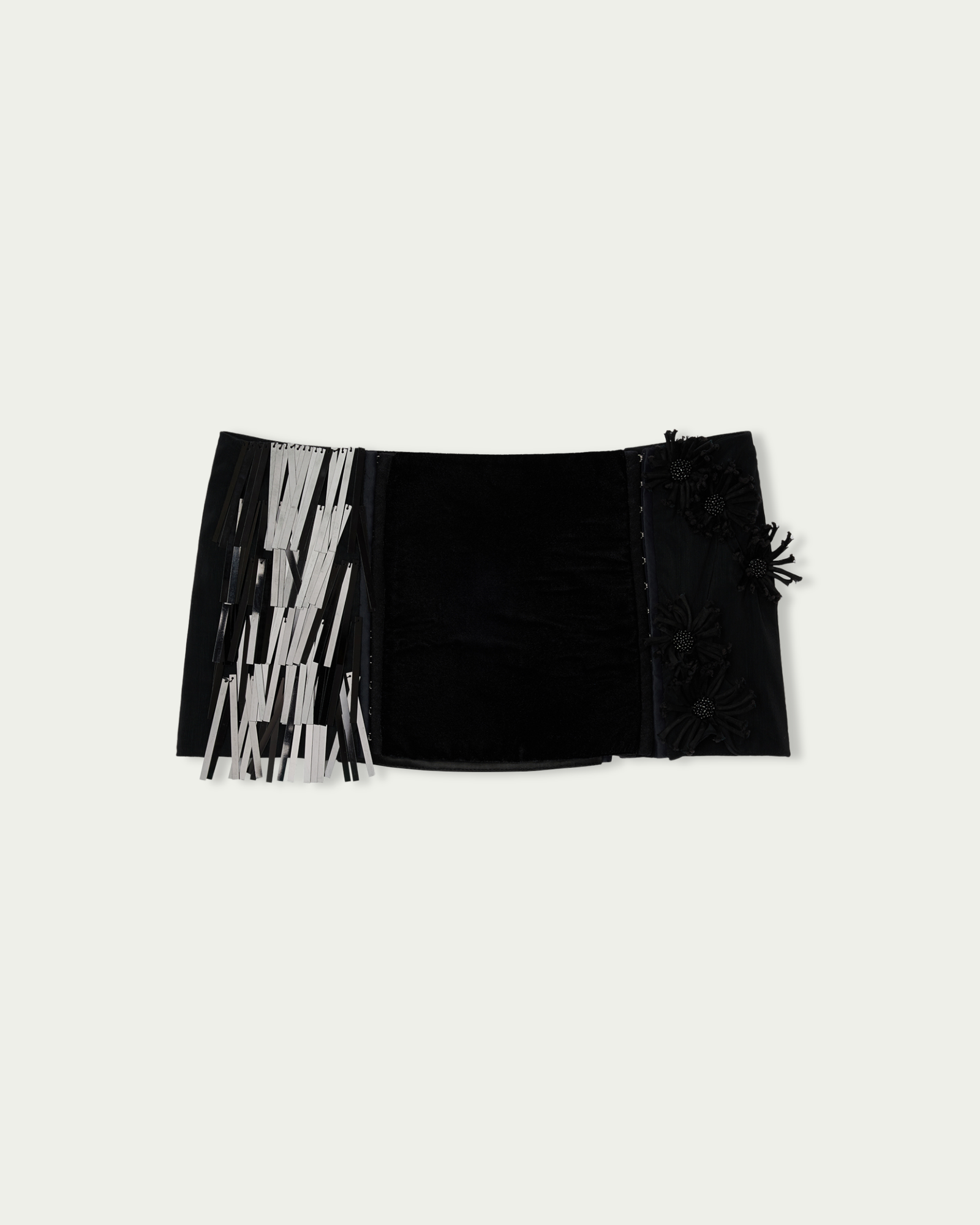 Paneled hand-embroidered sequins and flowers mini skirt