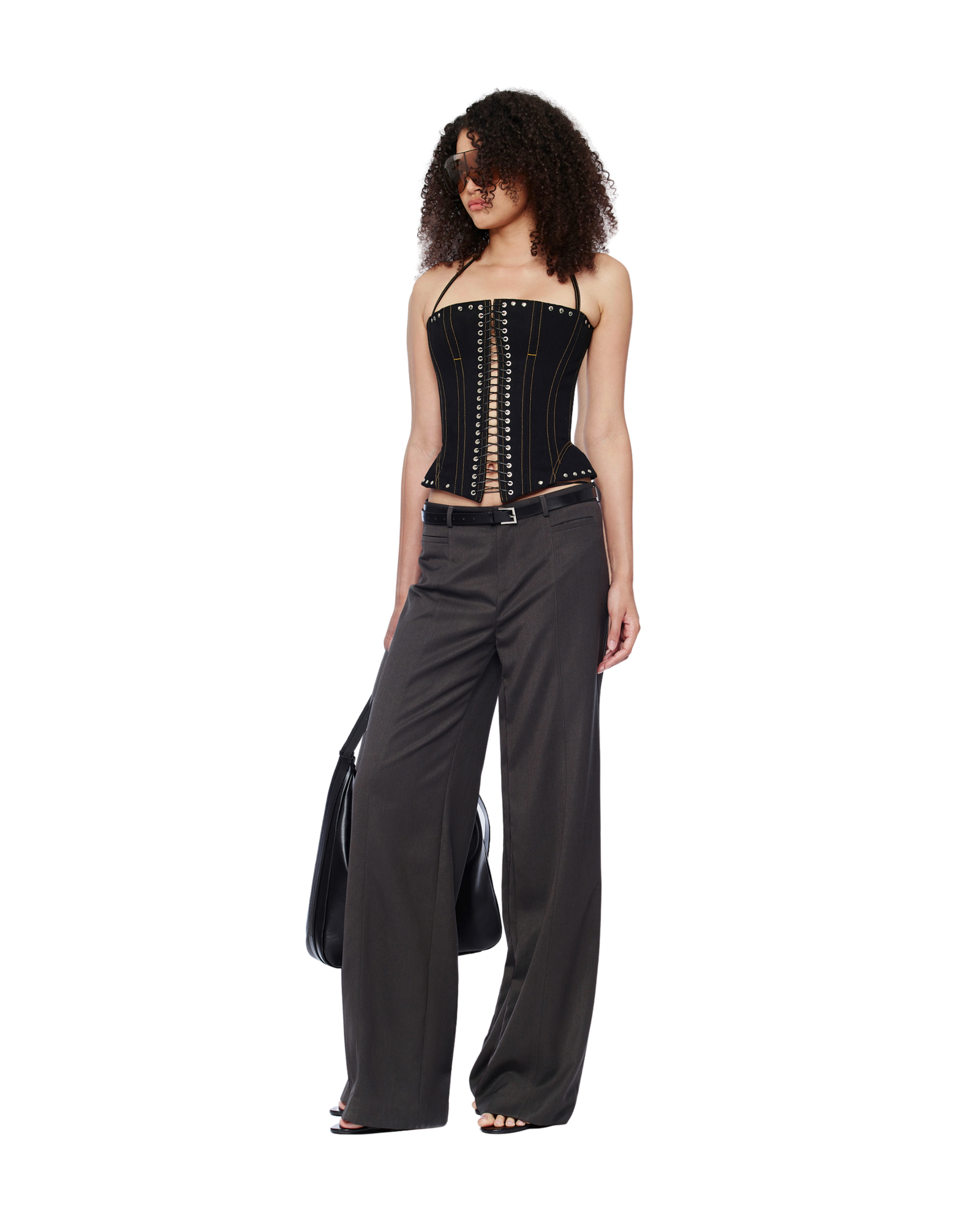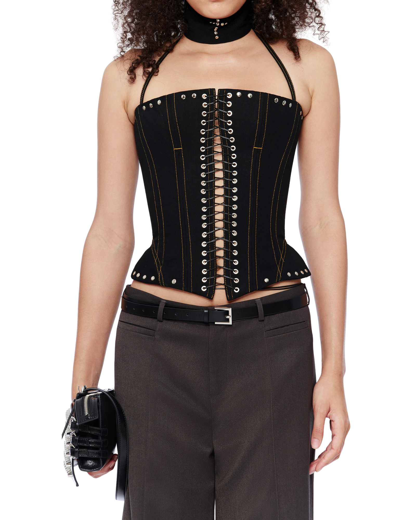 HALTER CORSET WITH STUDDED DETAILS WITH CROSS PATTERN CHOKER