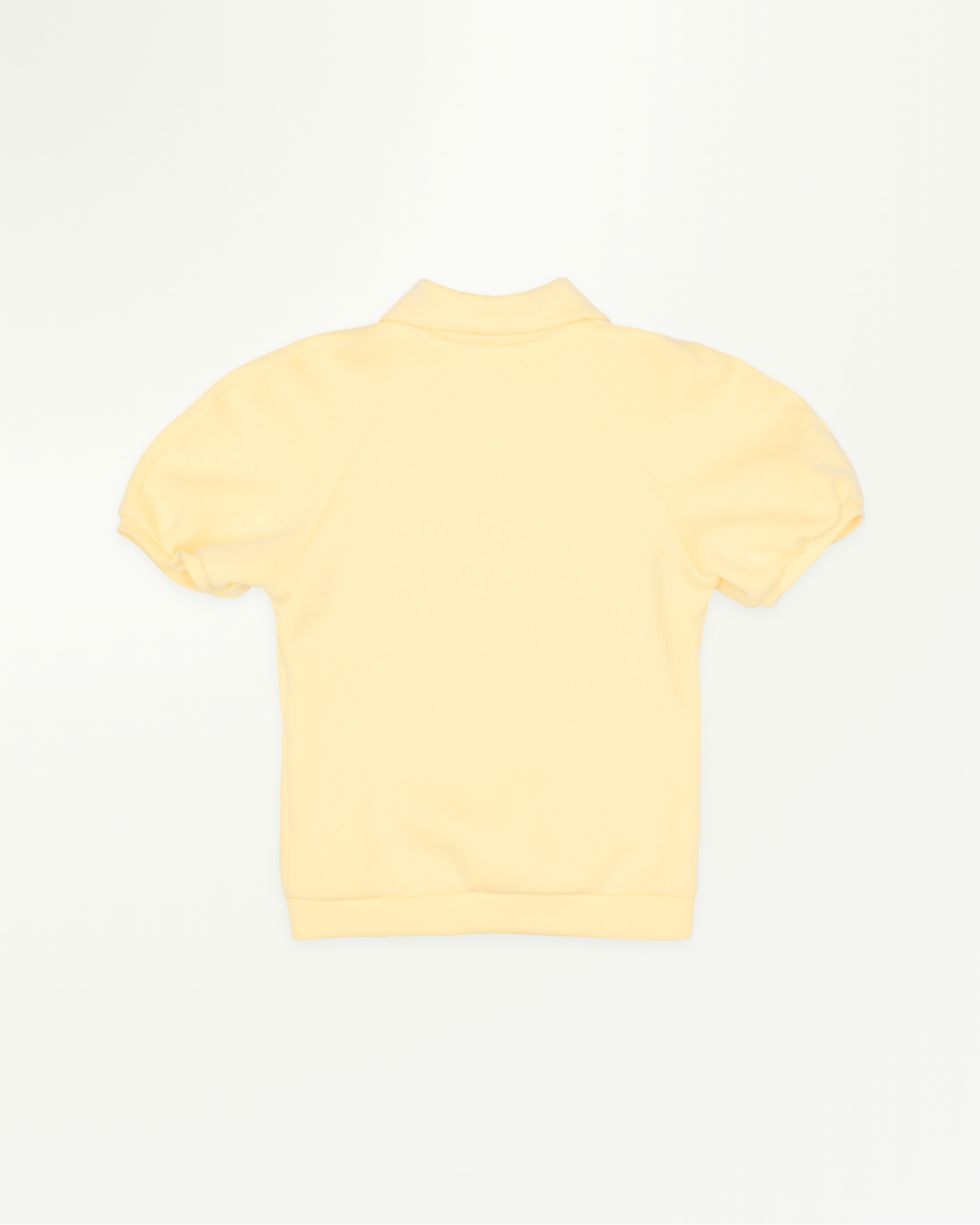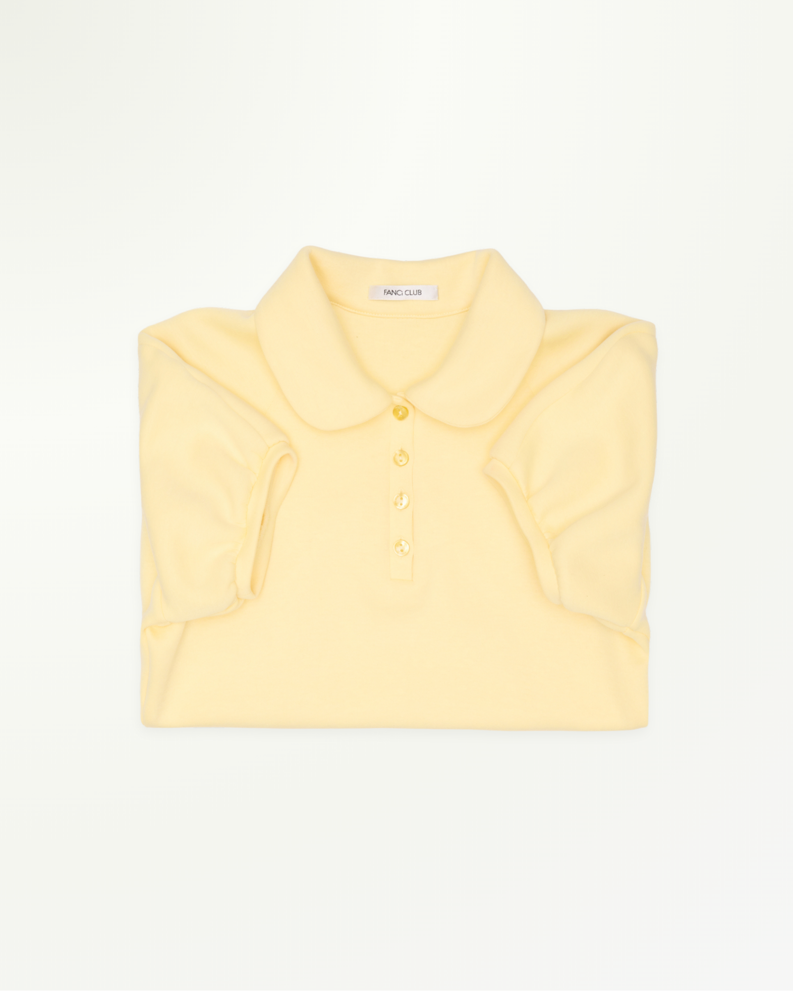 Cropped polo reimagined with a Peter Pan collar and four-button placket. Raglan puff sleeves add a soft volume, while the drawstring pockets tie off in playful bows. Effortless with pencil skirts or mini shorts for an everyday feminine twist.