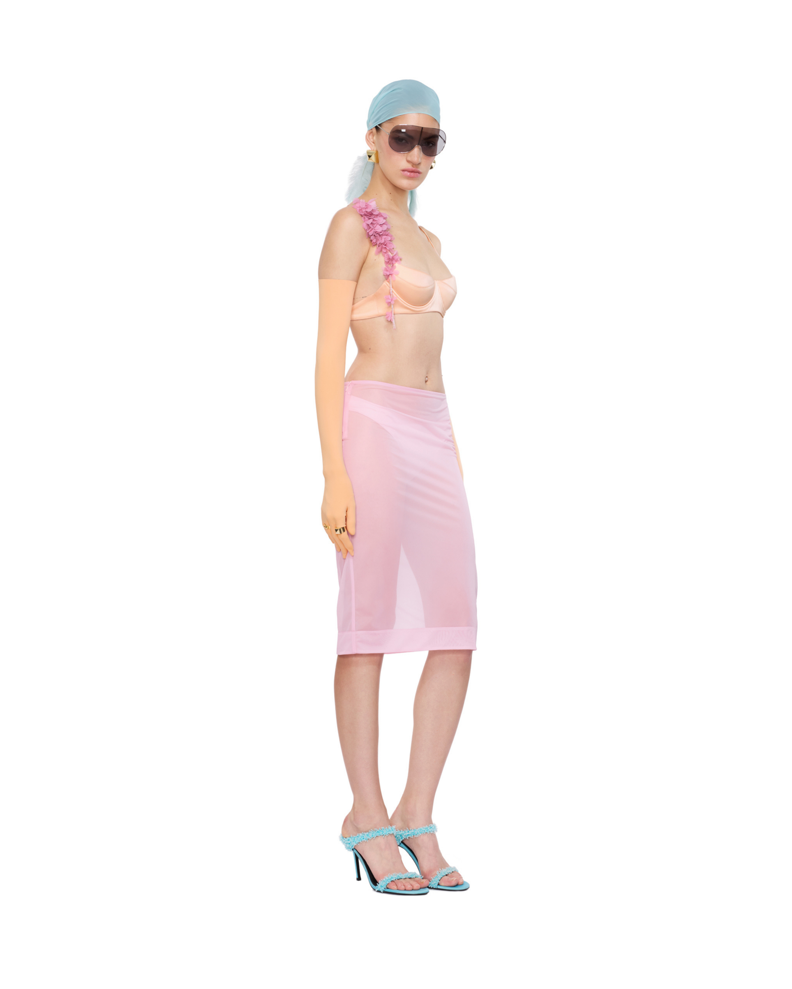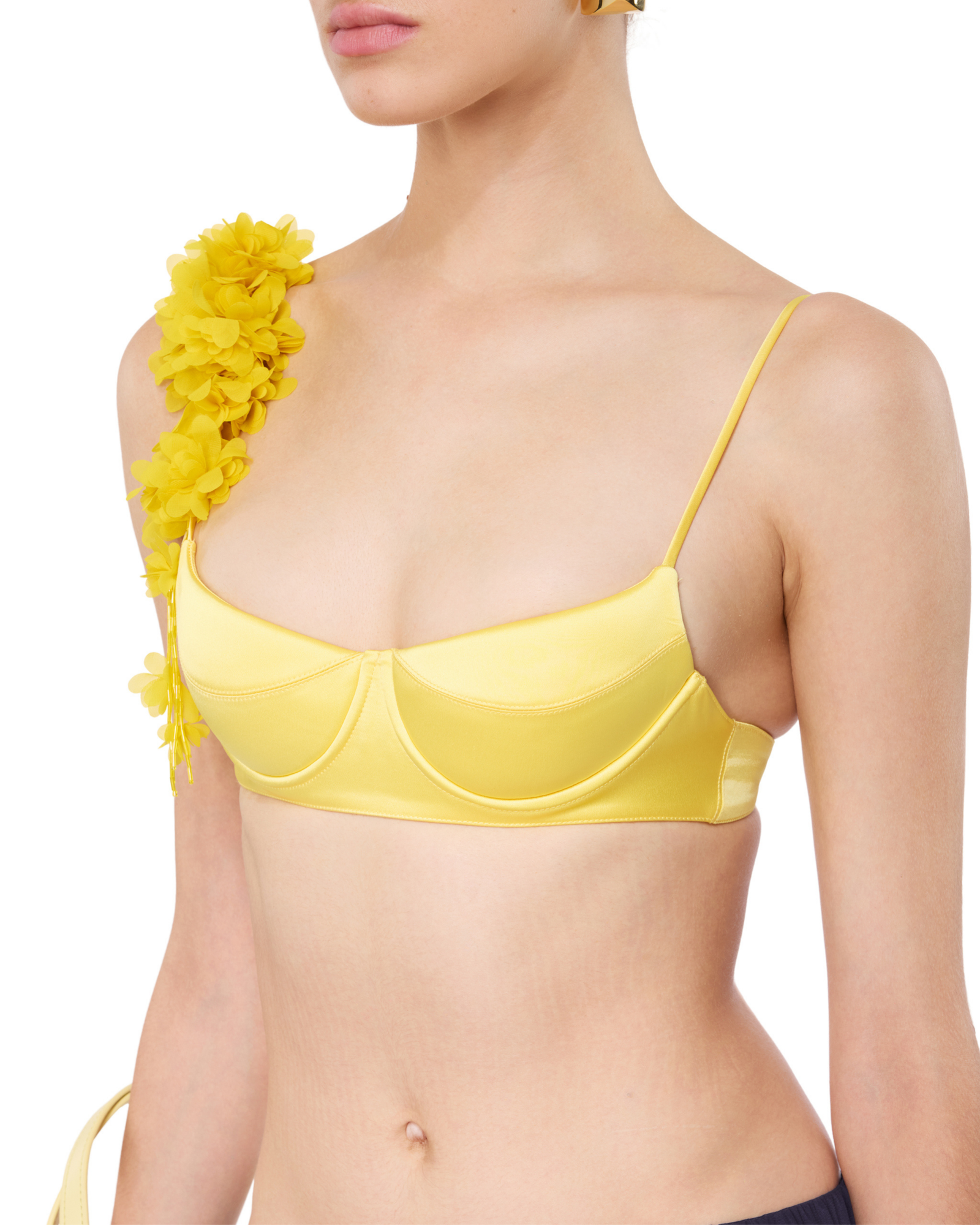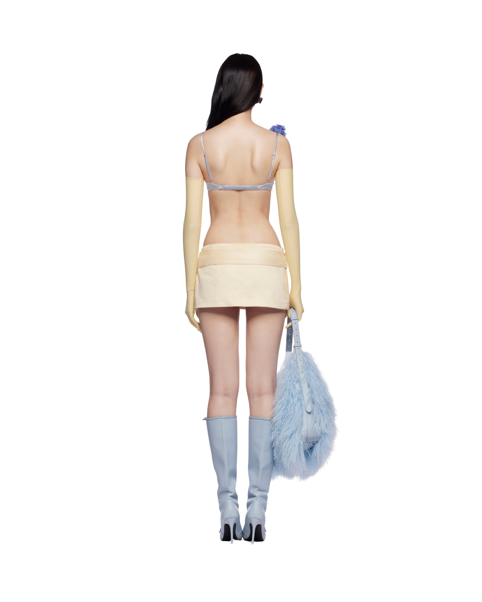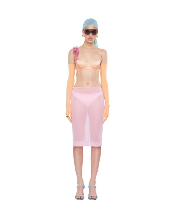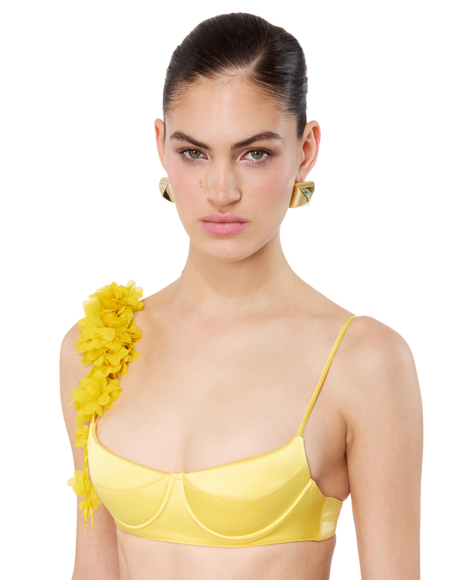 A silk demi bra top crafted with wired cups and a sleek one-button back closure. Perfectly styled under sheer blouses, slip dresses, or layered with a sharp blazer for an effortless lingerie-as-outerwear statement.