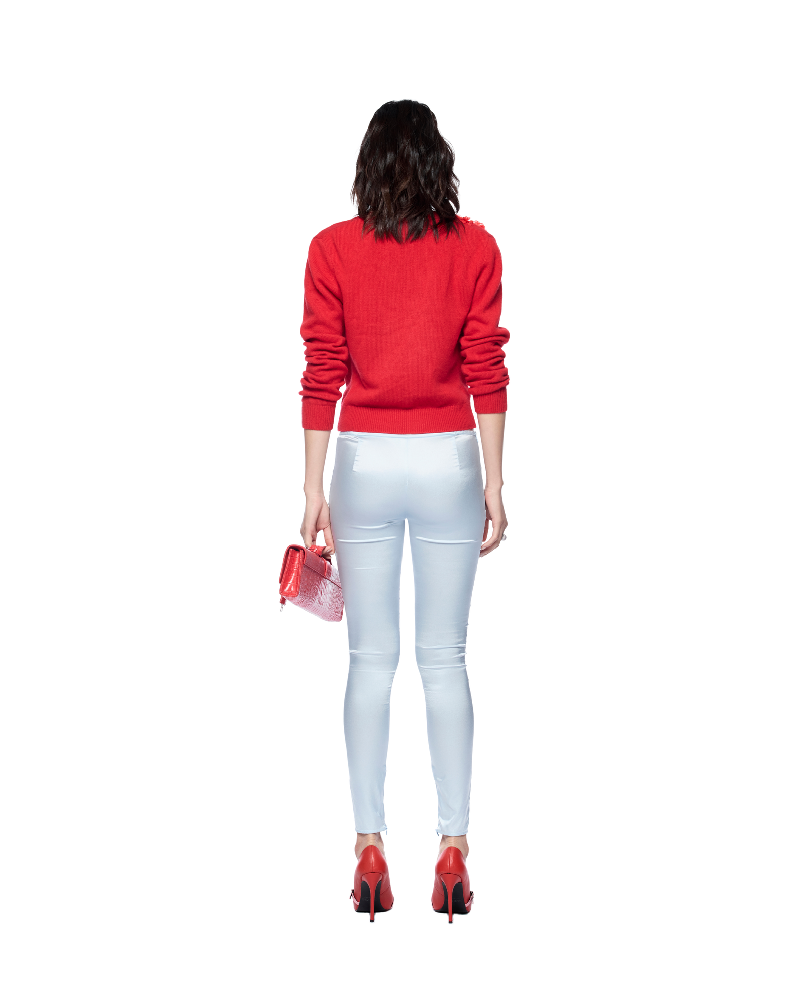 A silk leggings in a sleek cropped cut, low at the waist and sharply hugging the body. Finished with ankle zips for an elongated effect, they style effortlessly with a shirt, knit top, or a casual polo.
