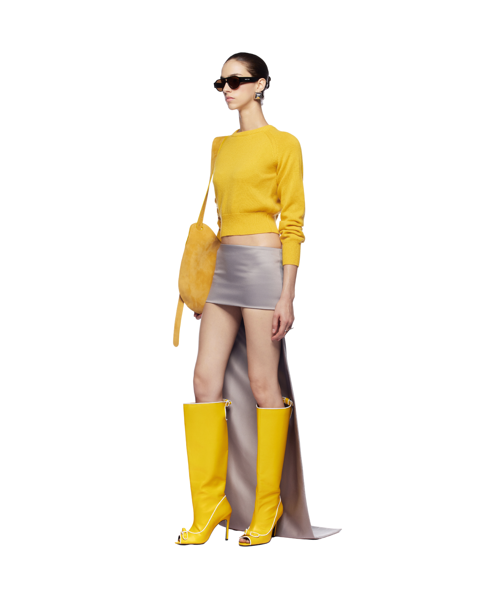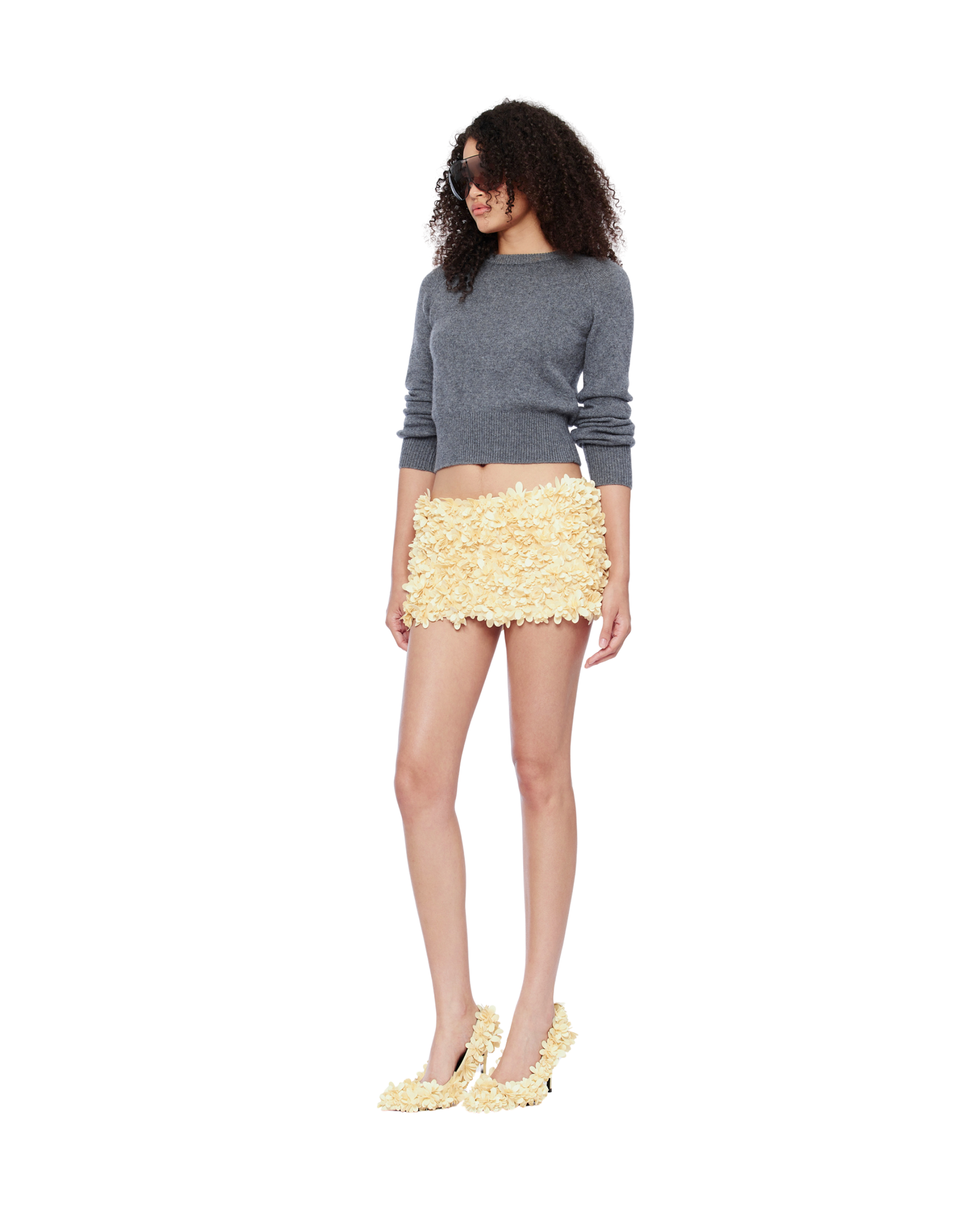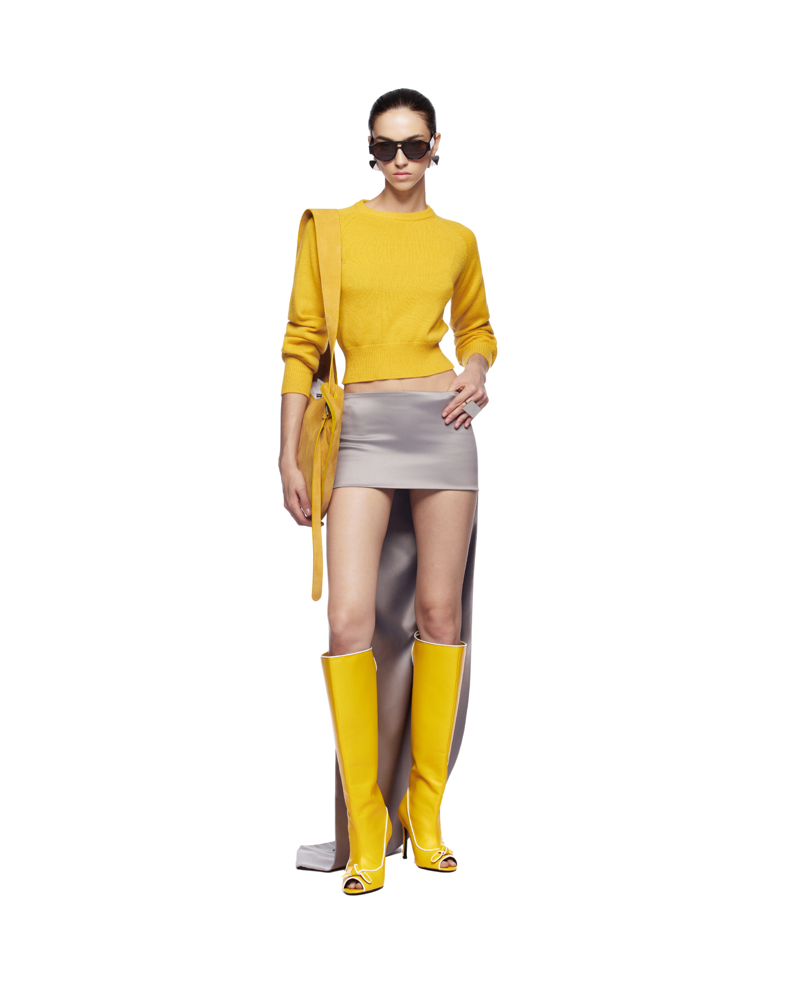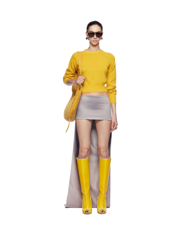 Cropped sweater with long sleeves and ribbed edges for a refined, elegant look. Keeps warmth while maintaining its shape and layers beautifully under shirts or blazers. Style with bold accessories, shorts, mini or A-line skirts, and tailored trousers for a polished outfit.