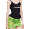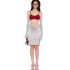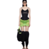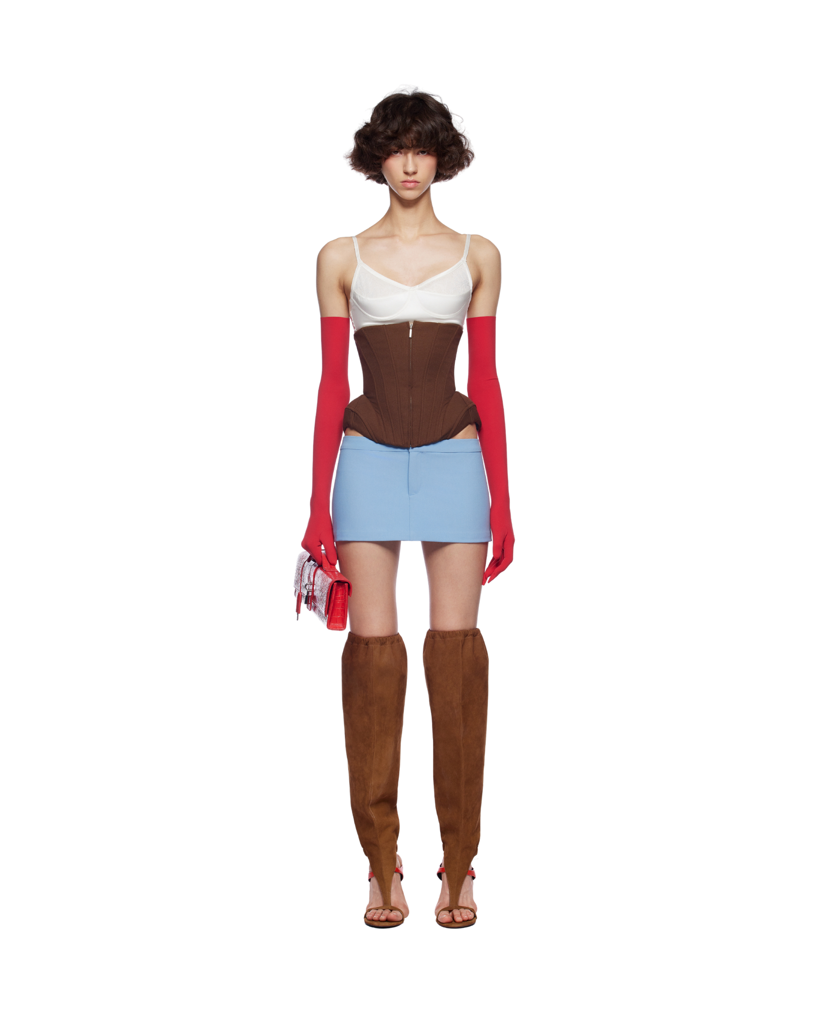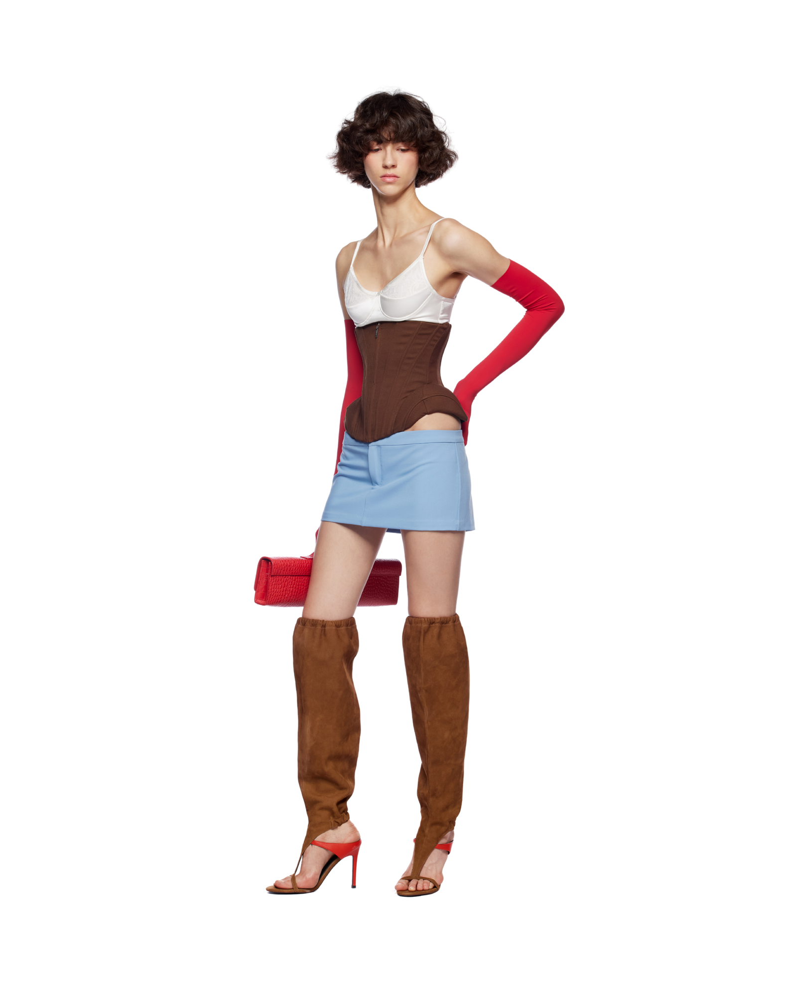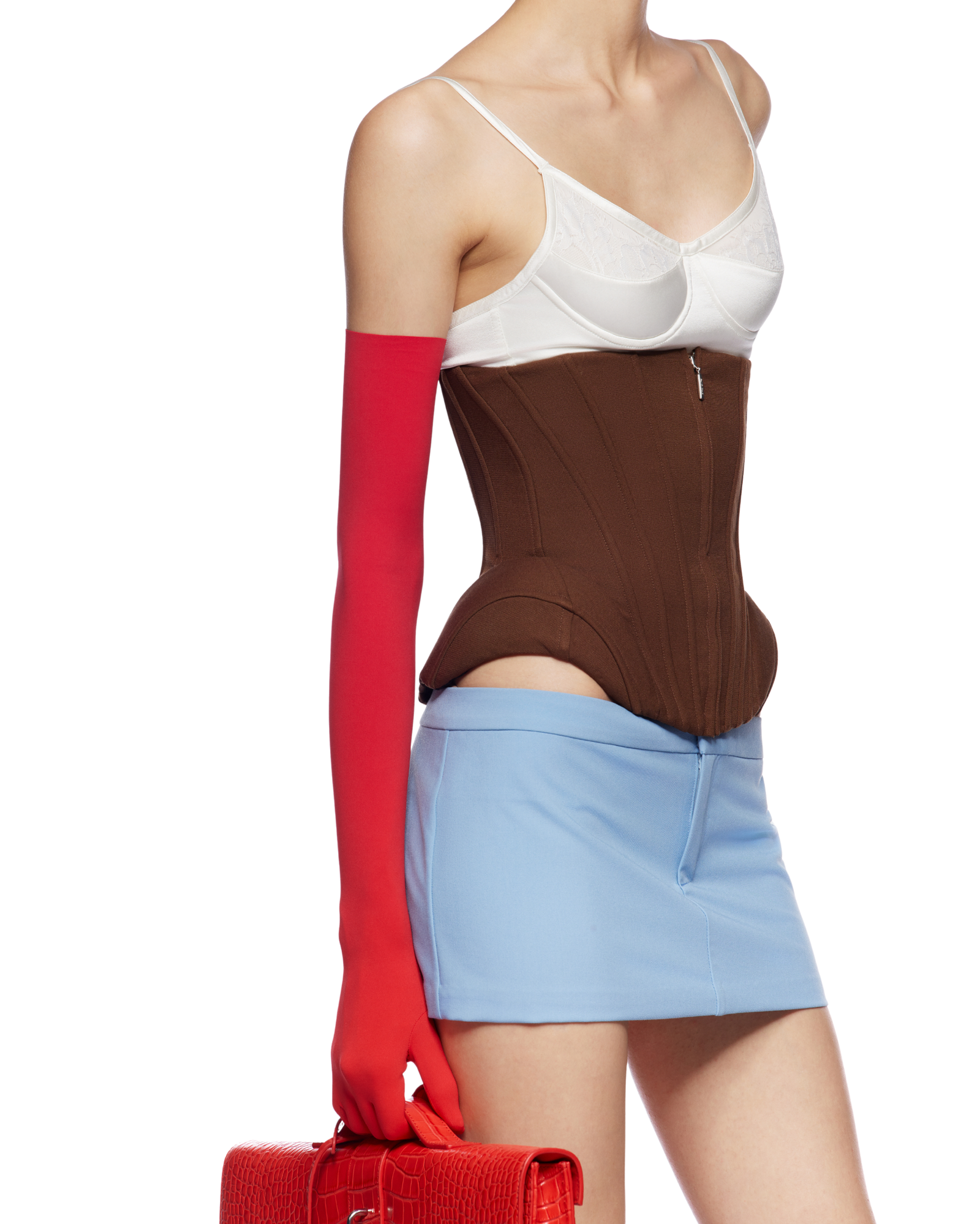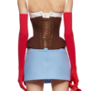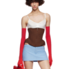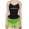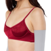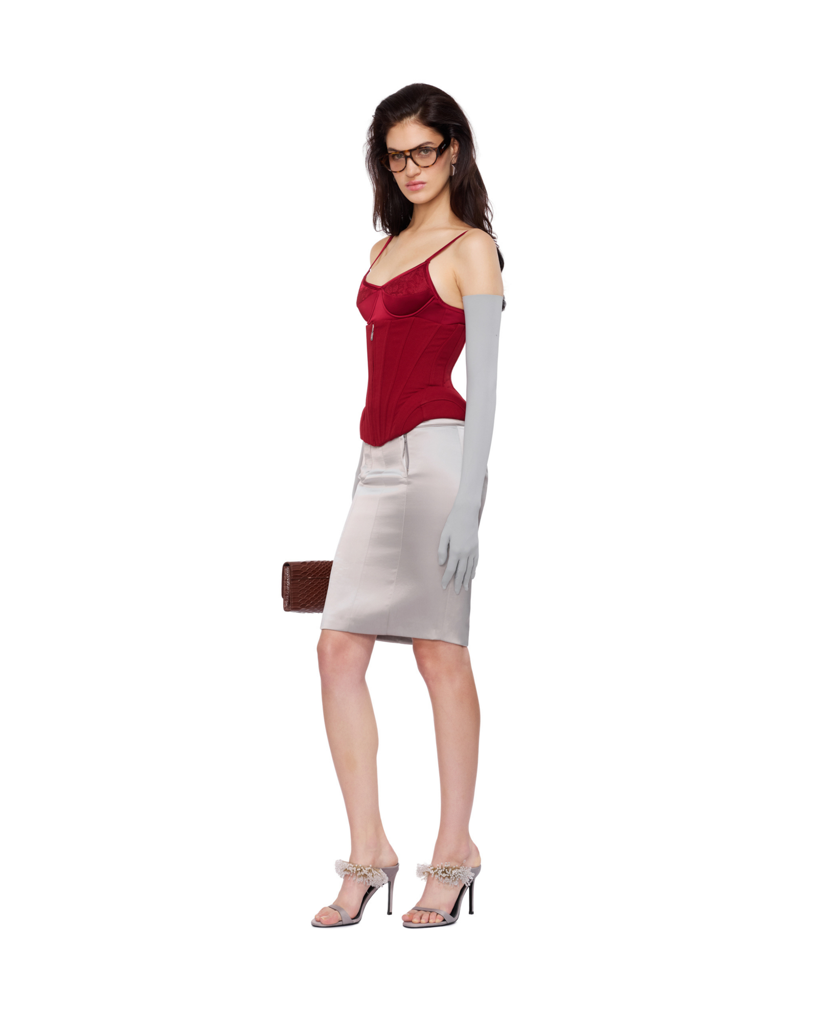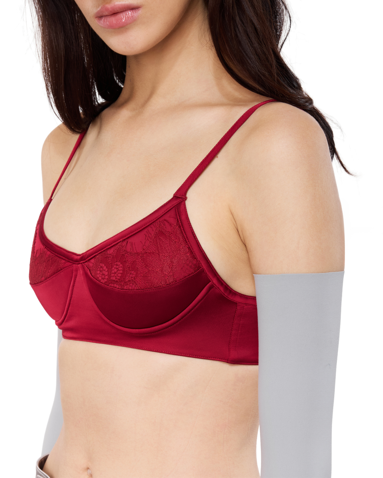 Satin demi bra top Lace panels at cups Wired cups Adjustable straps Lace-up closure at back