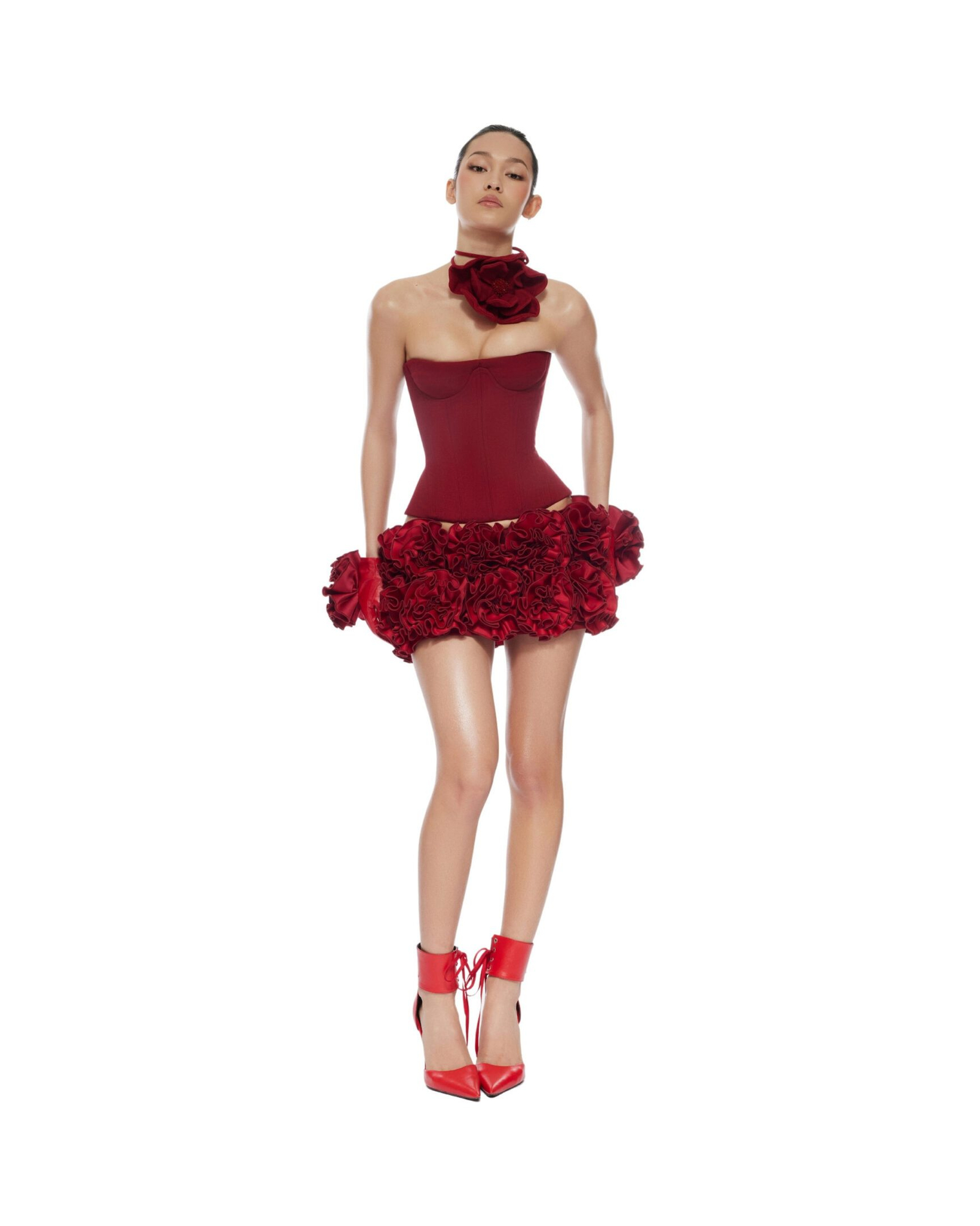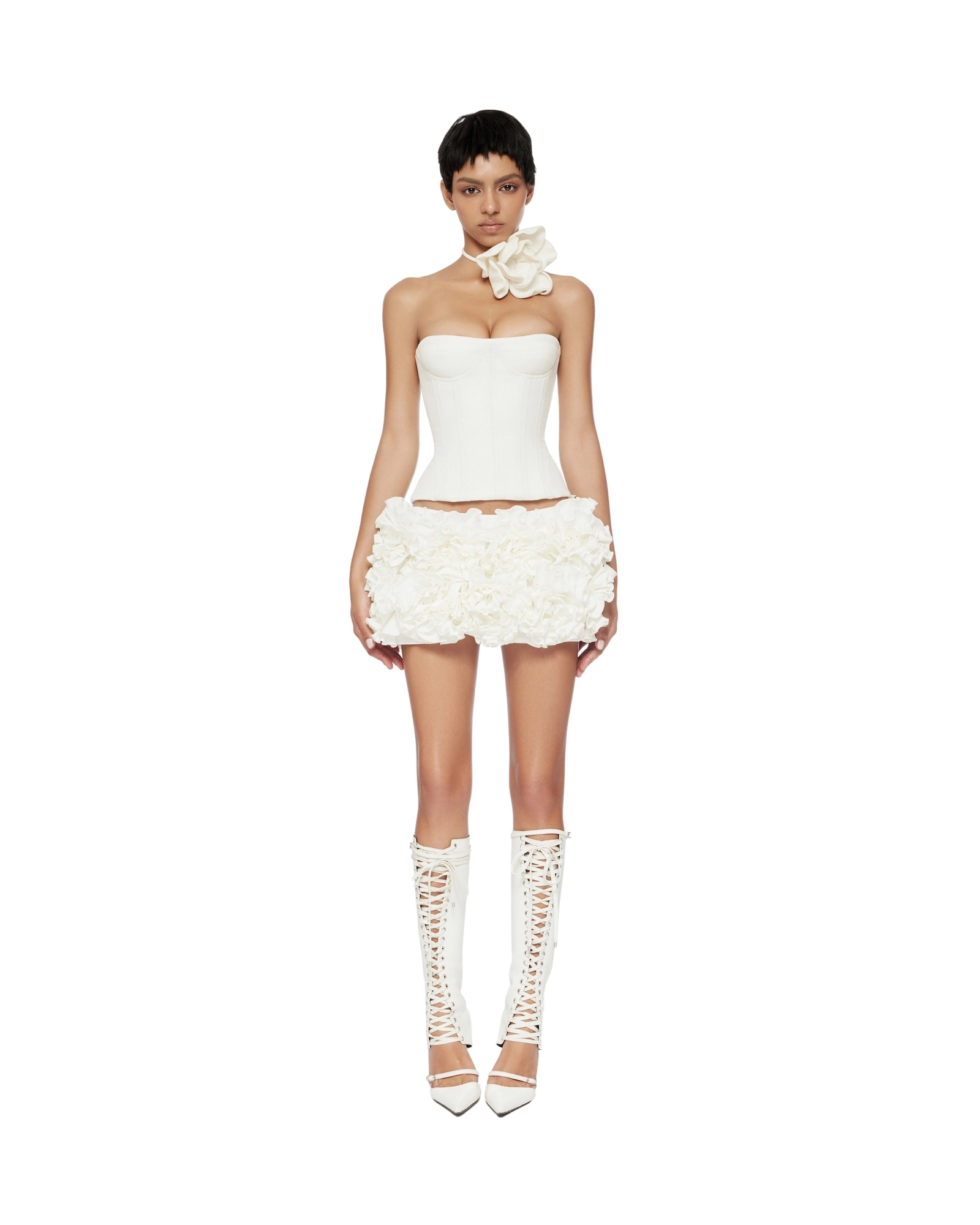 Hand embroidered flowers mini skirt