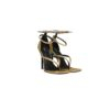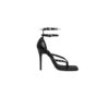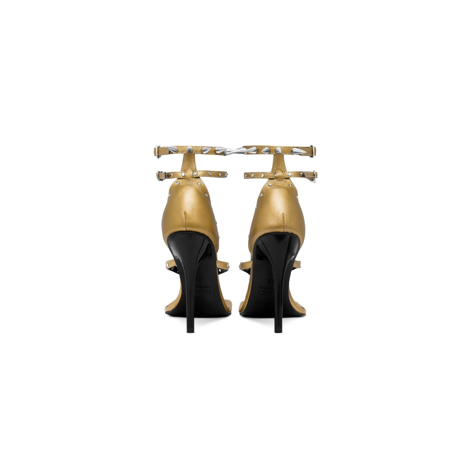 Open square toe, with sheepskin footbed and leather sole Adjustable pin-buckle ankle straps with spikes Logo-imprinted heel