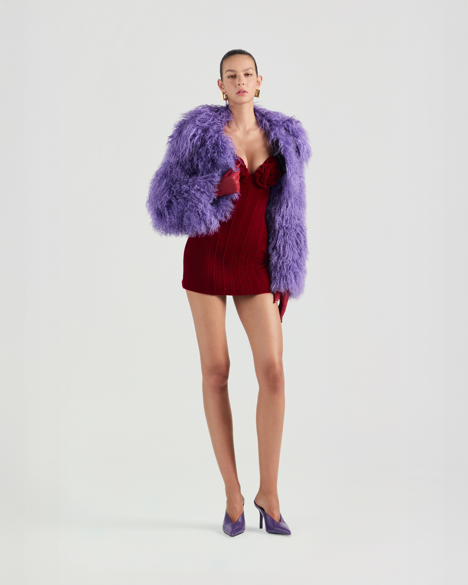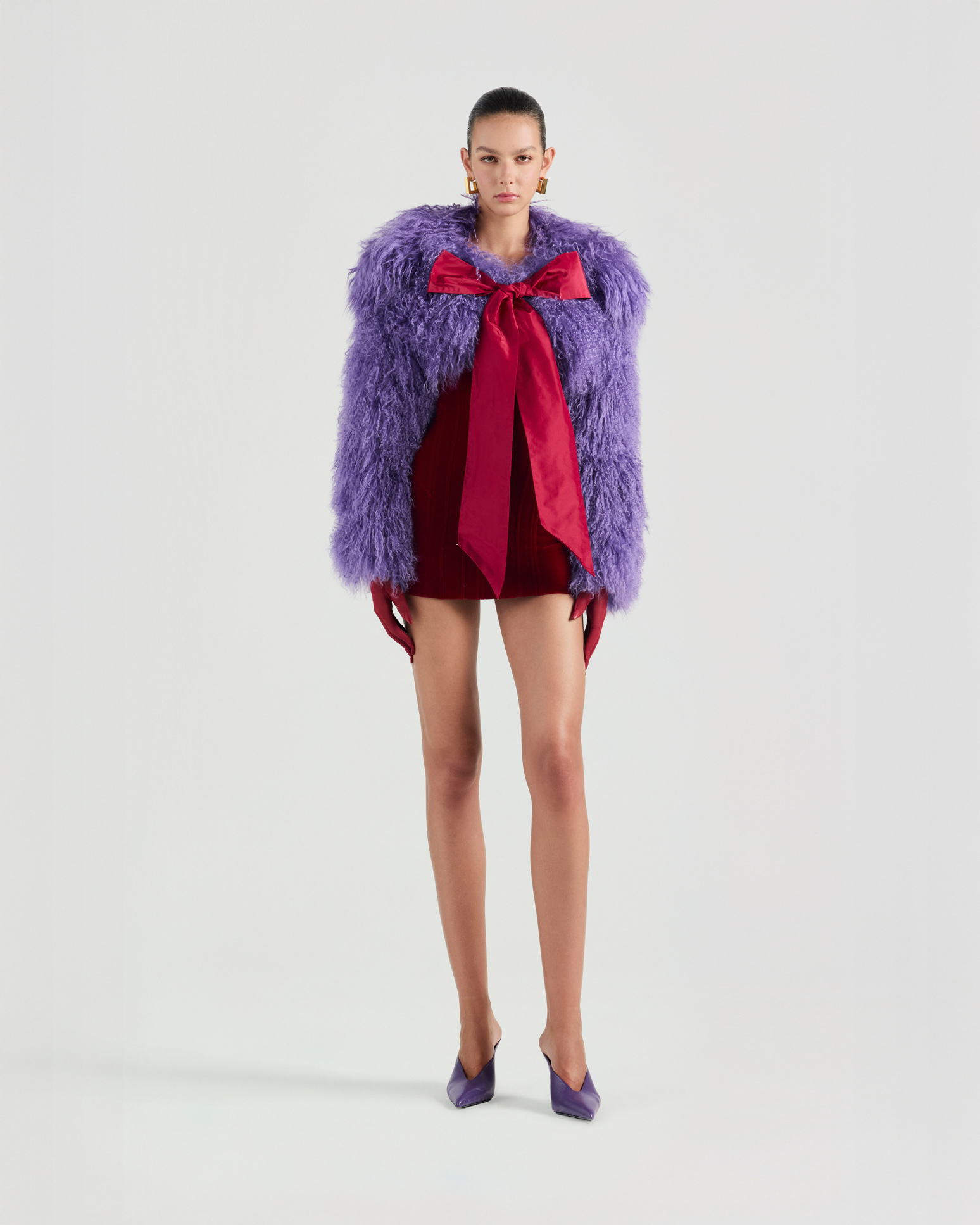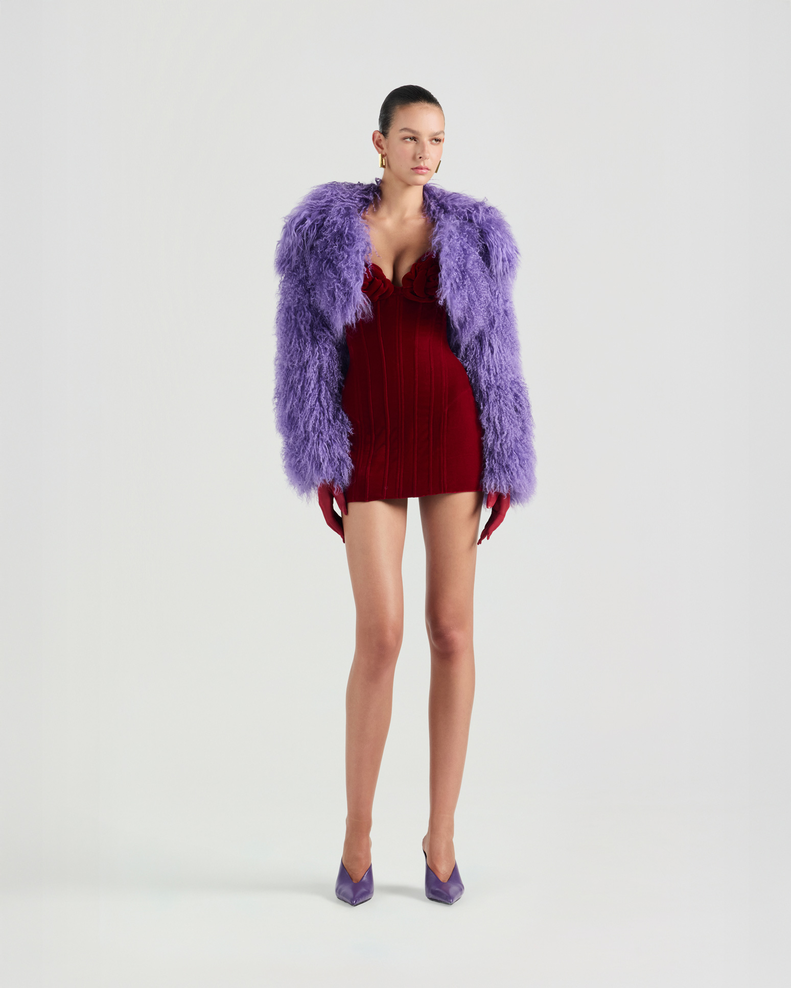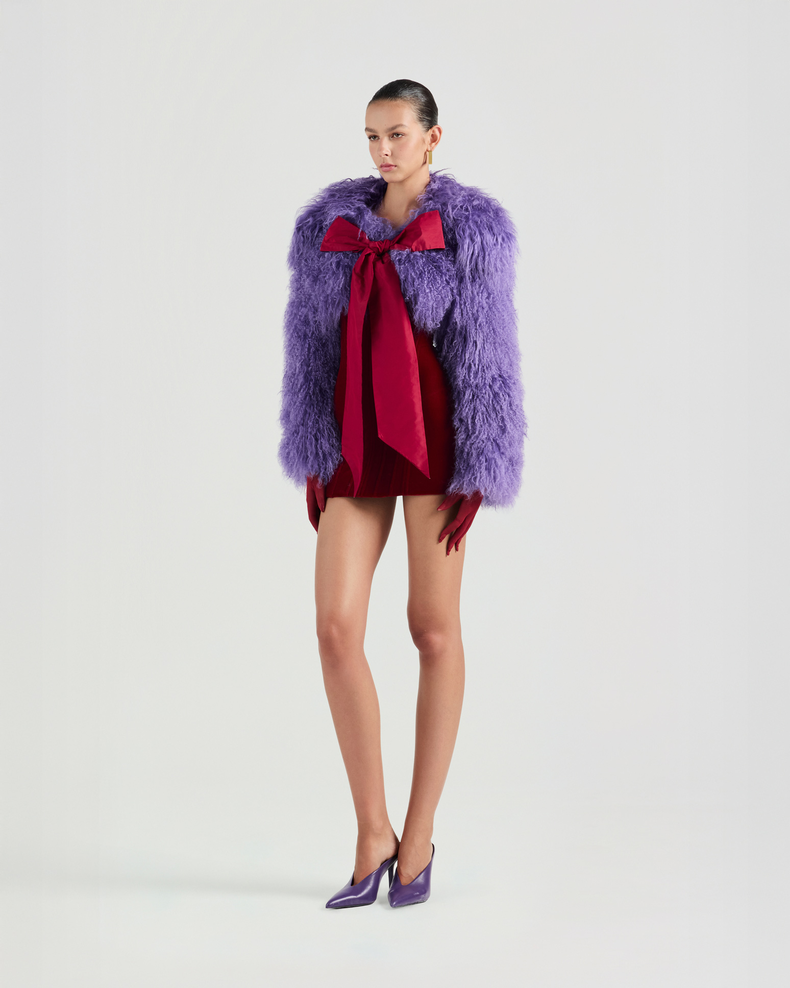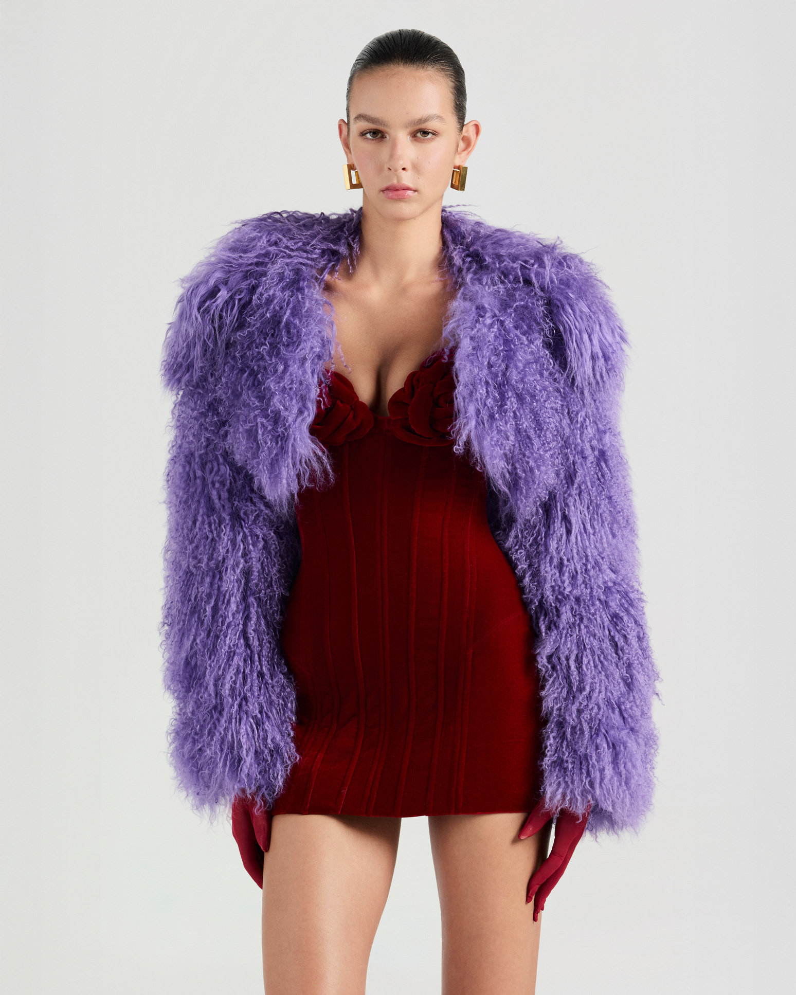 Designed in a cropped silhouette, this faux-fur coat conveys a modern, luxurious sensibility. The plush faux-fur surface offers refined volume and effective warmth while maintaining a compact profile.