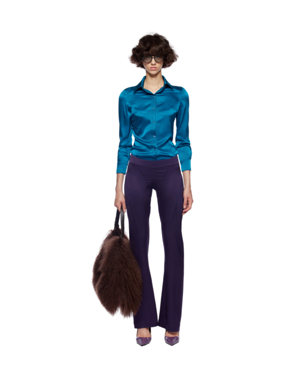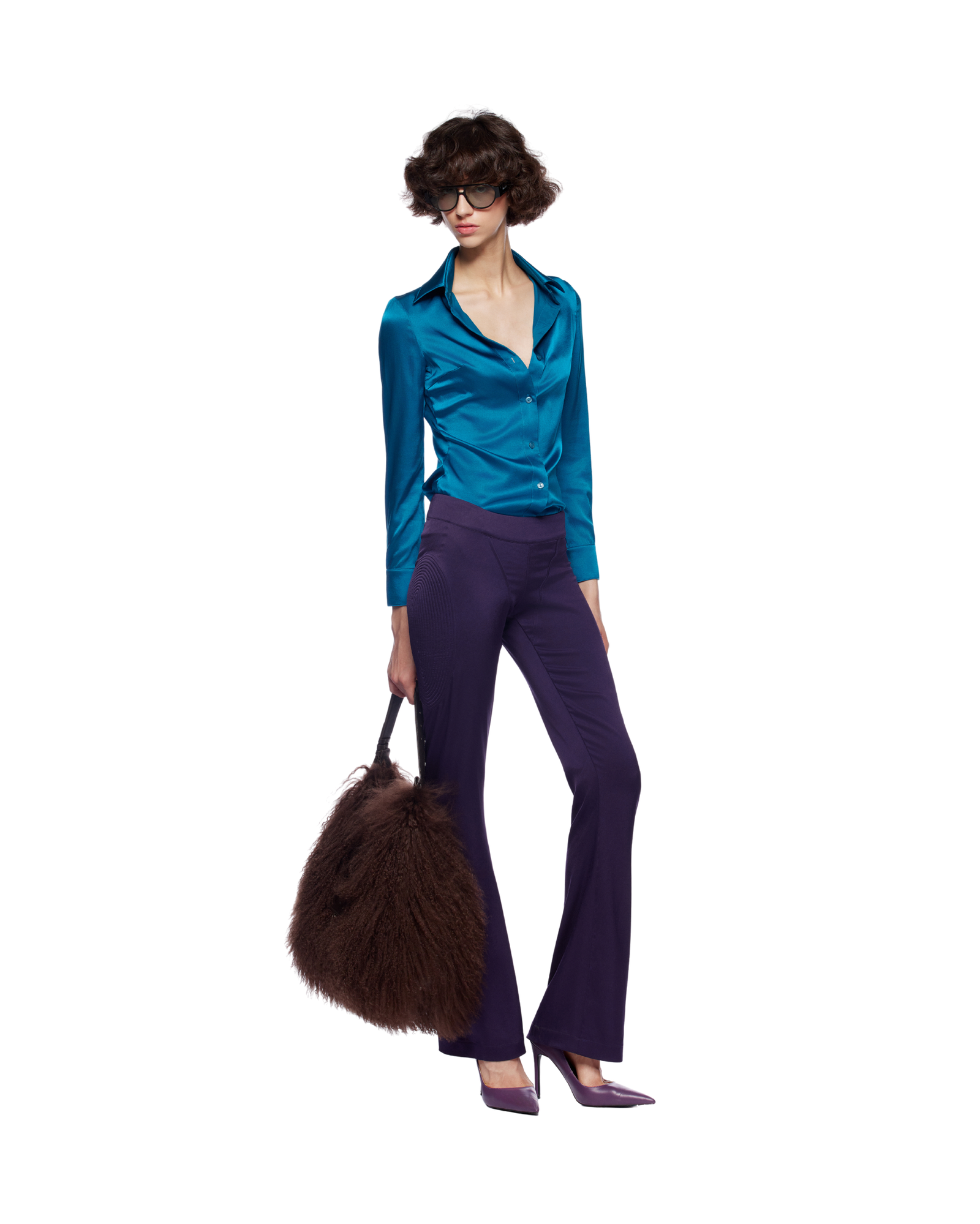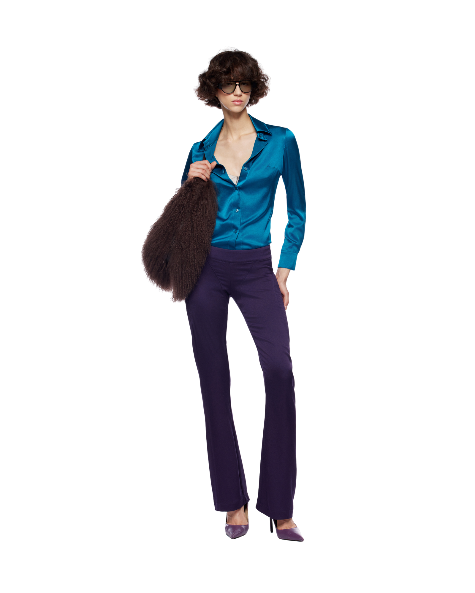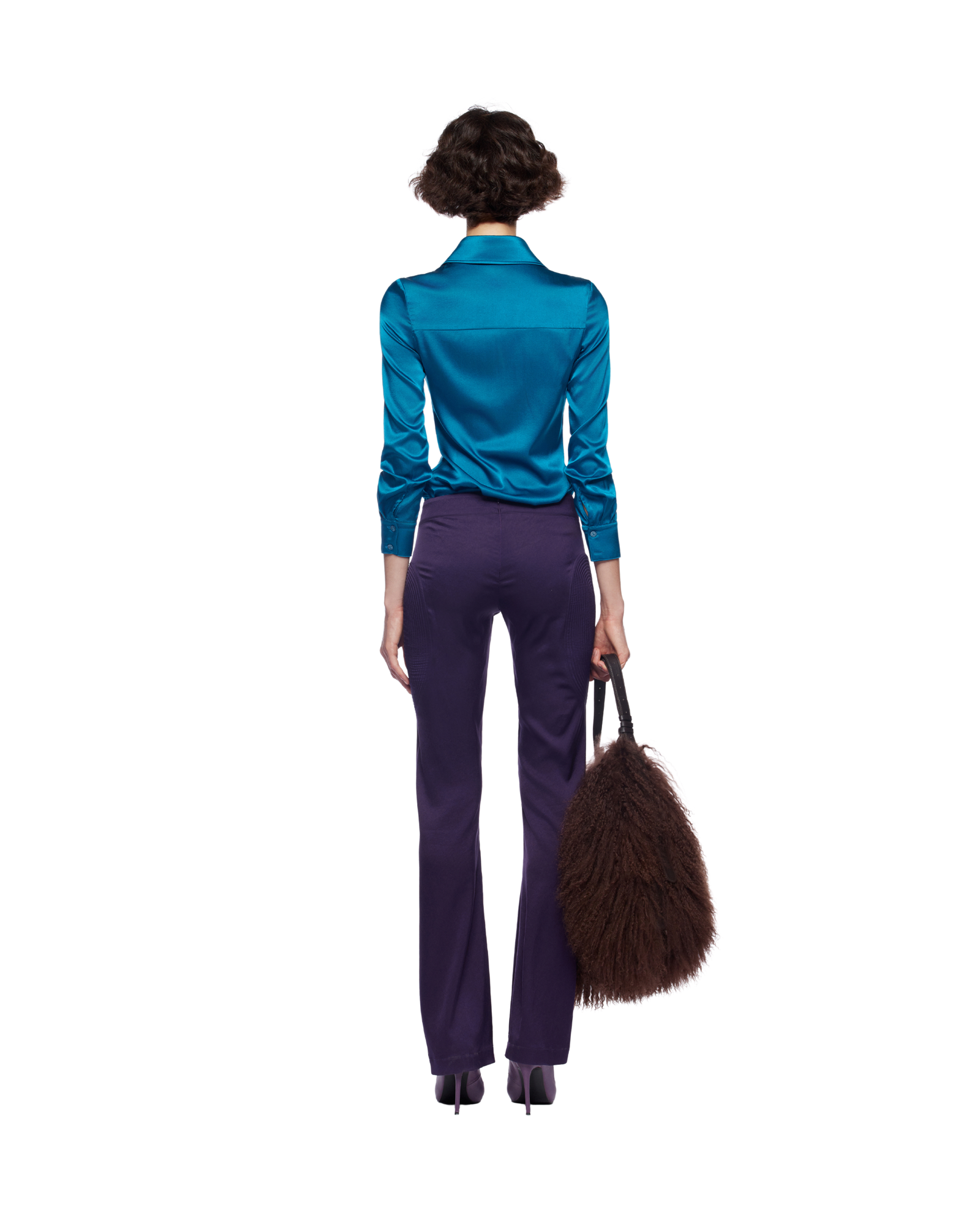 Satin bootcut pants with lightly padded, circular-quilted hips that flow into a leg-lengthening bootcut silhouette. Effortlessly styled with a crisp shirt or a fitted knit top for a sleek finish