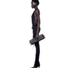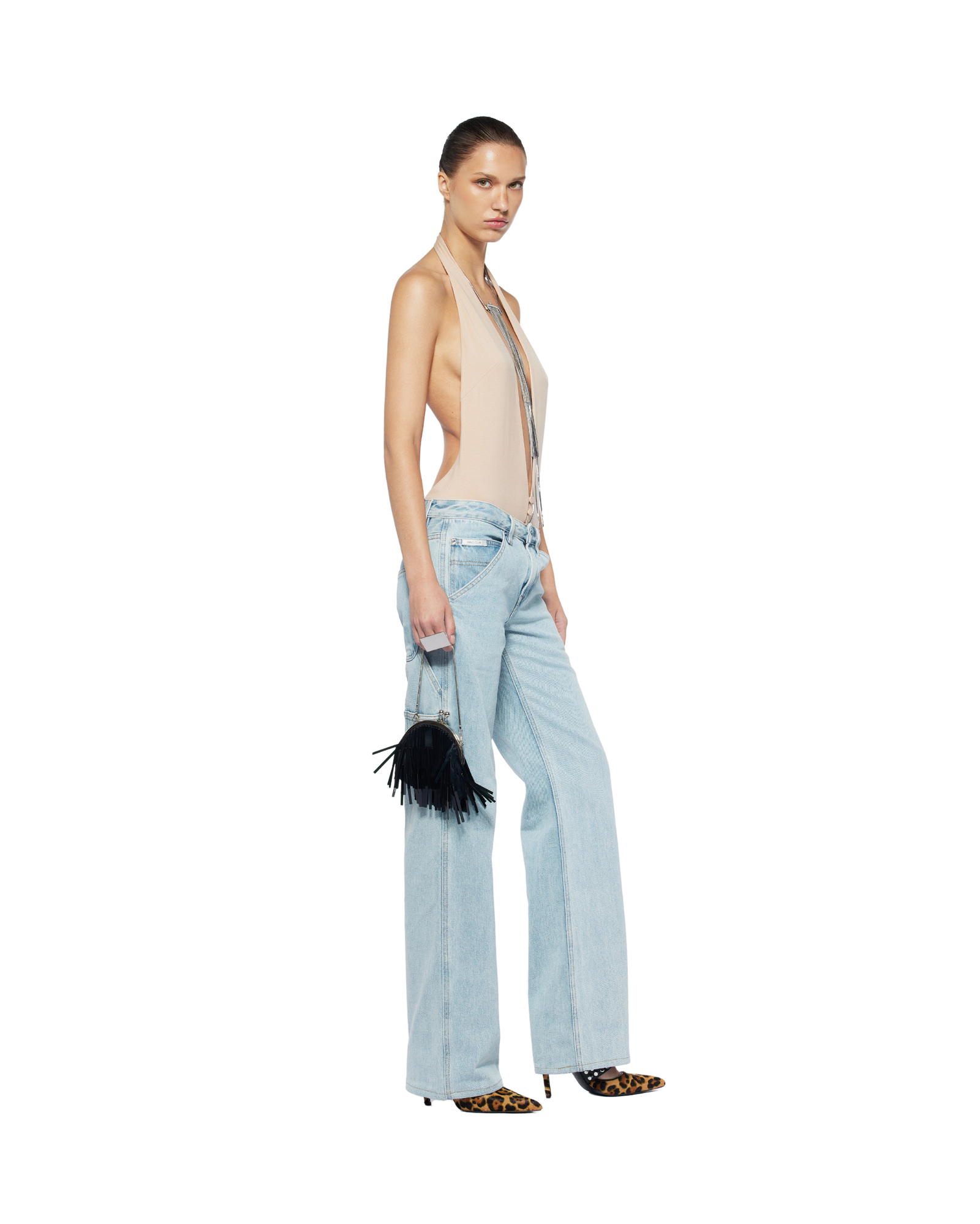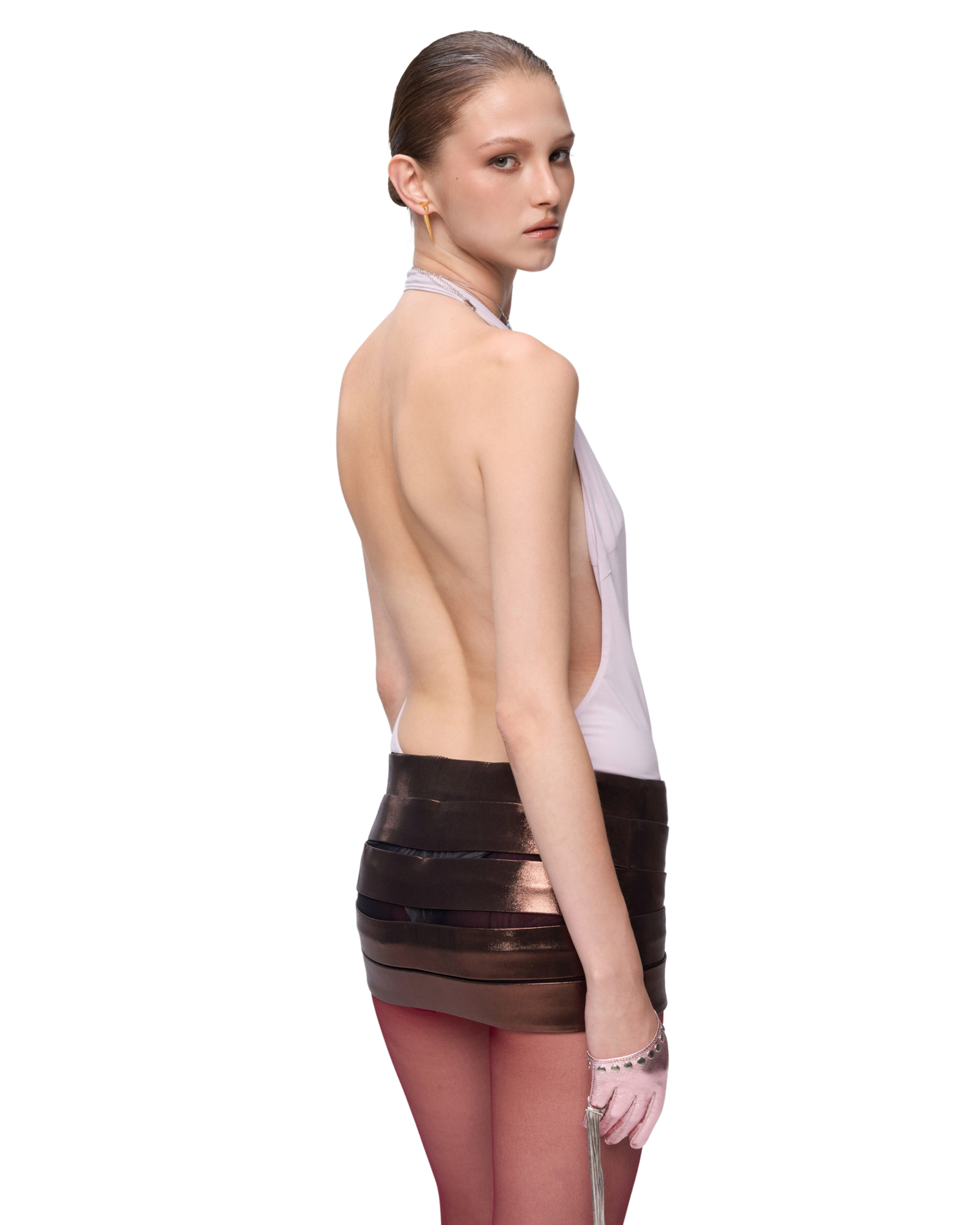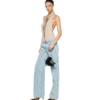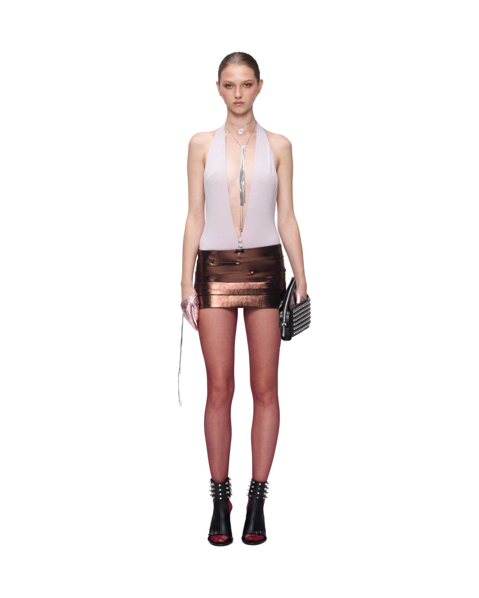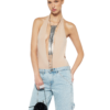 Deep V-cut neckline Buttons details at front Backless Halterneck