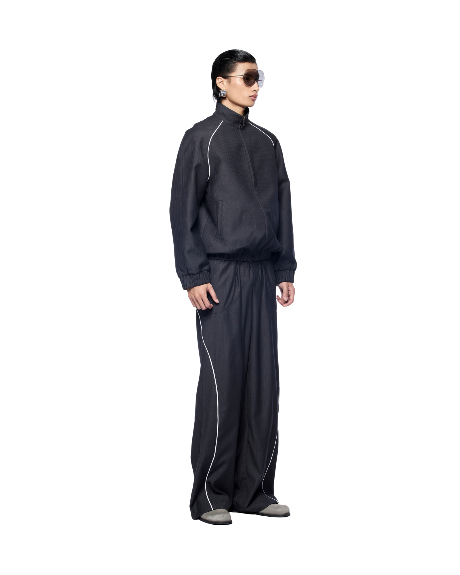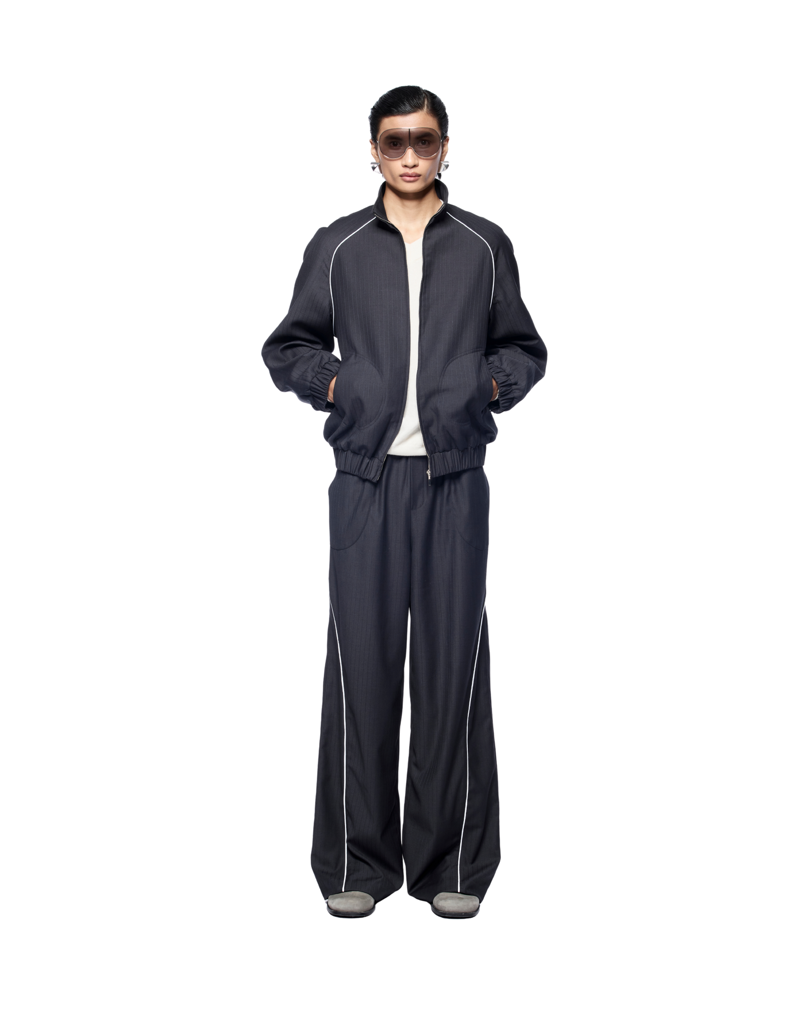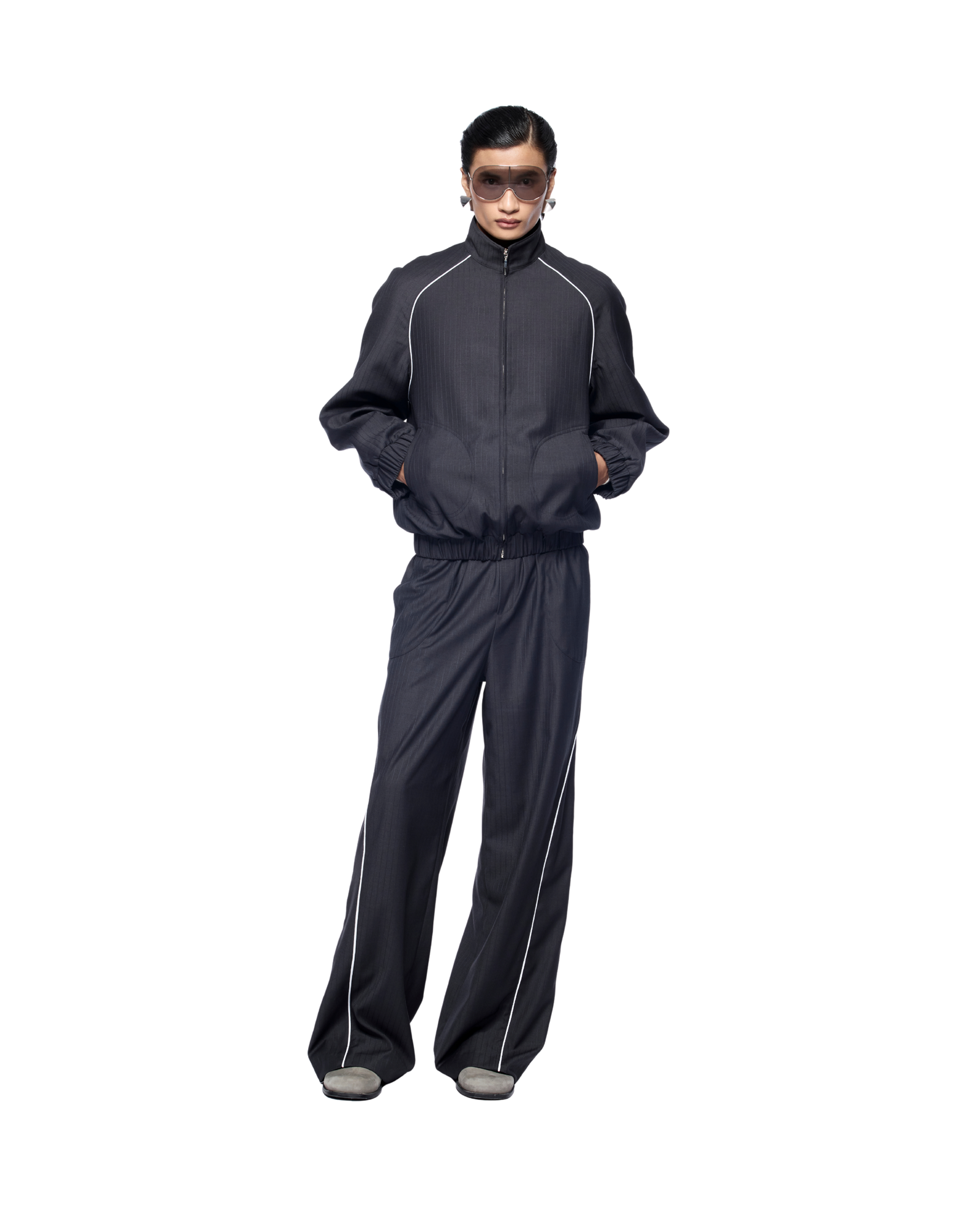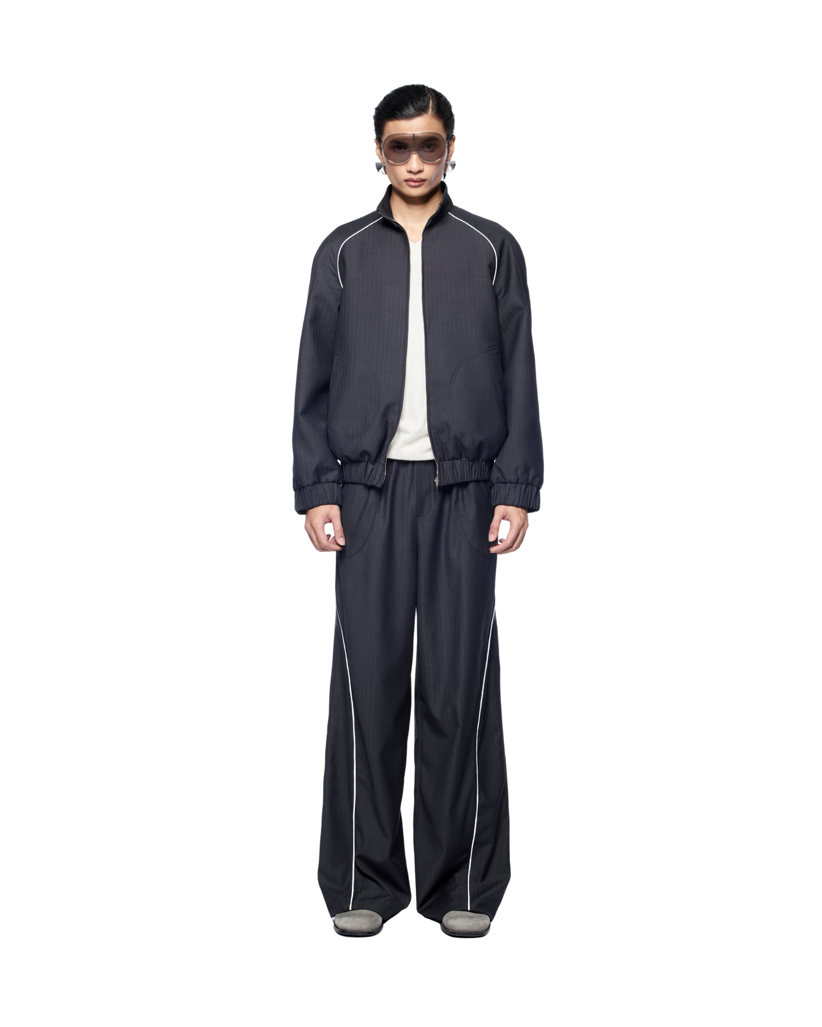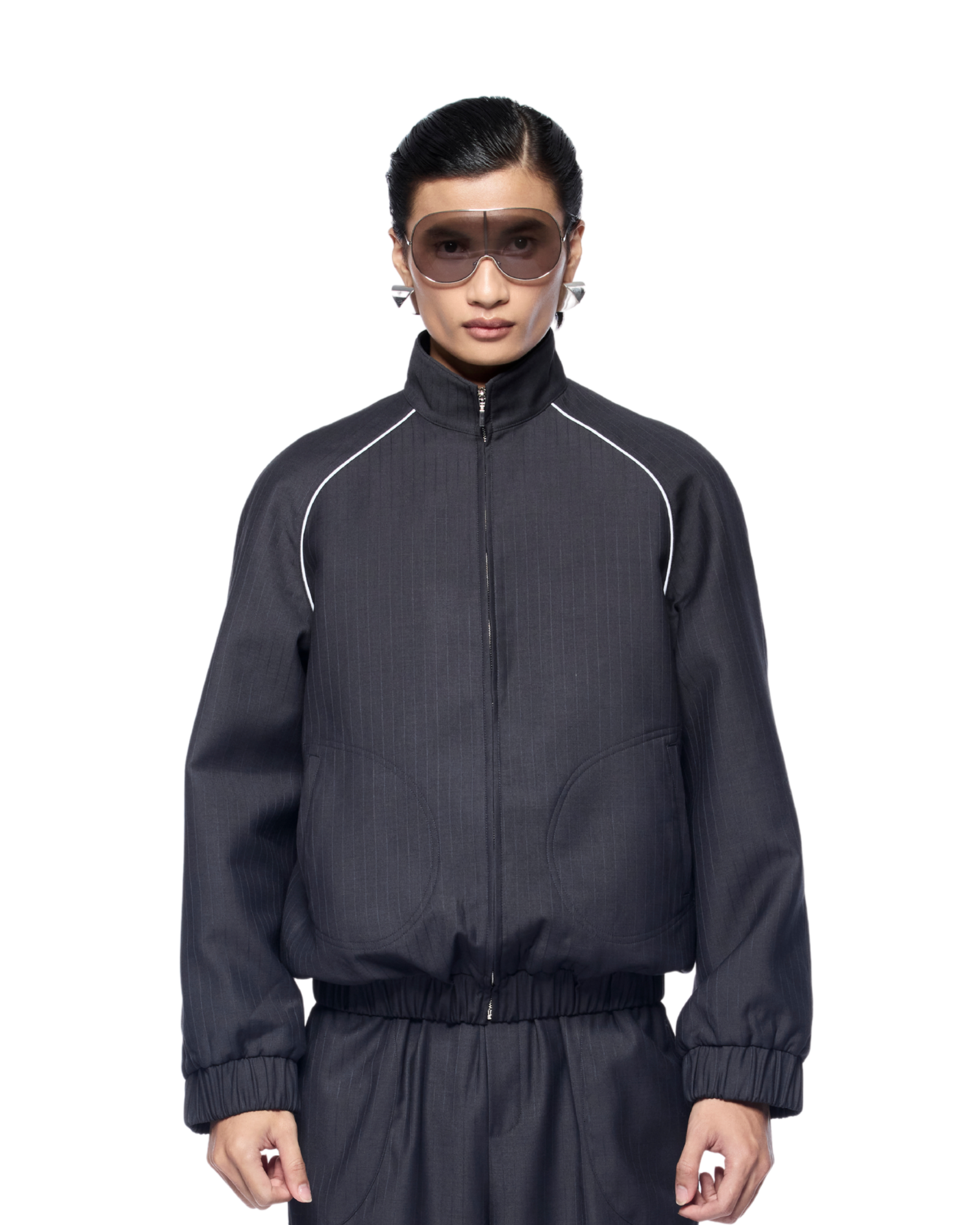 This track jacket plays with contrast piping and a structured silhouette, topped with a signature FANCì CLUB logo plate at the back. Works seamlessly with tailored or relaxed bottoms.