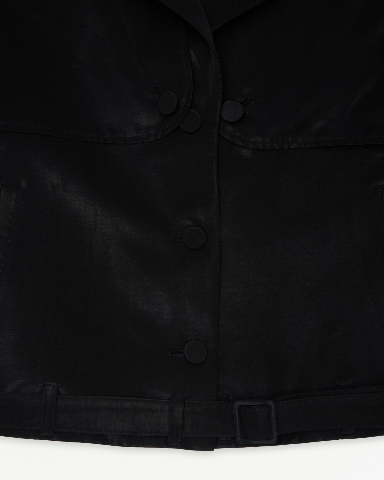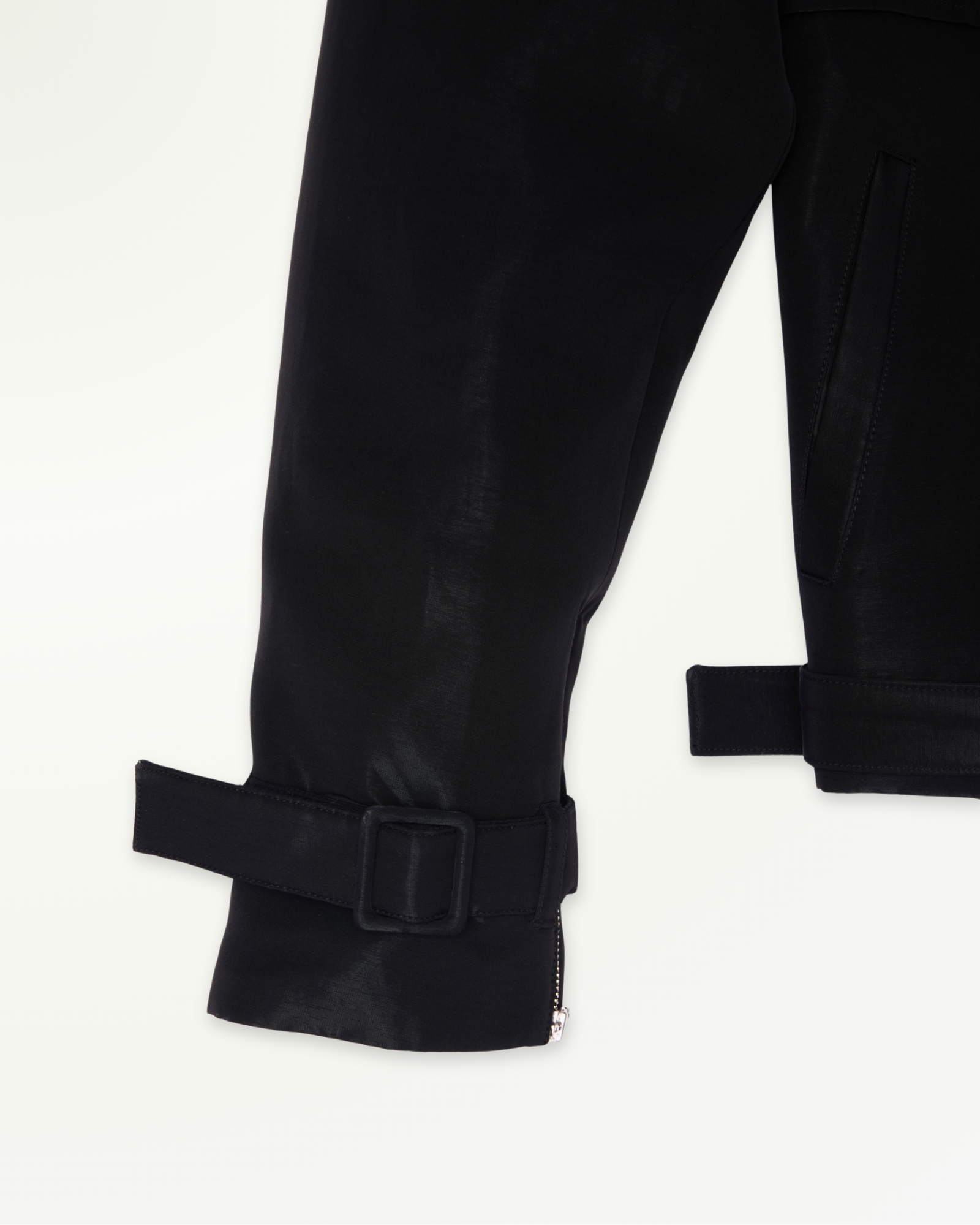 Belt loops and fabric belt at hem