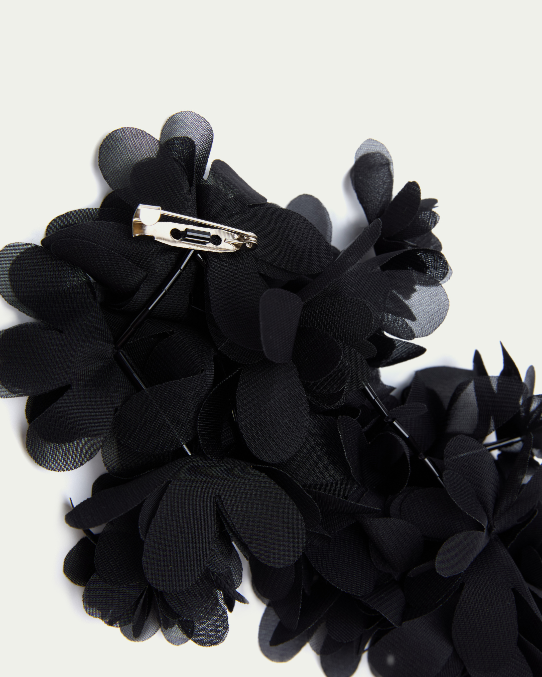 Chiffon floral cluster brooch with soft, flexible petals and a subtle cascading design. Perfect for elevating jackets, dresses, scarves, or any outfit needing a delicate, eye-catching accent.