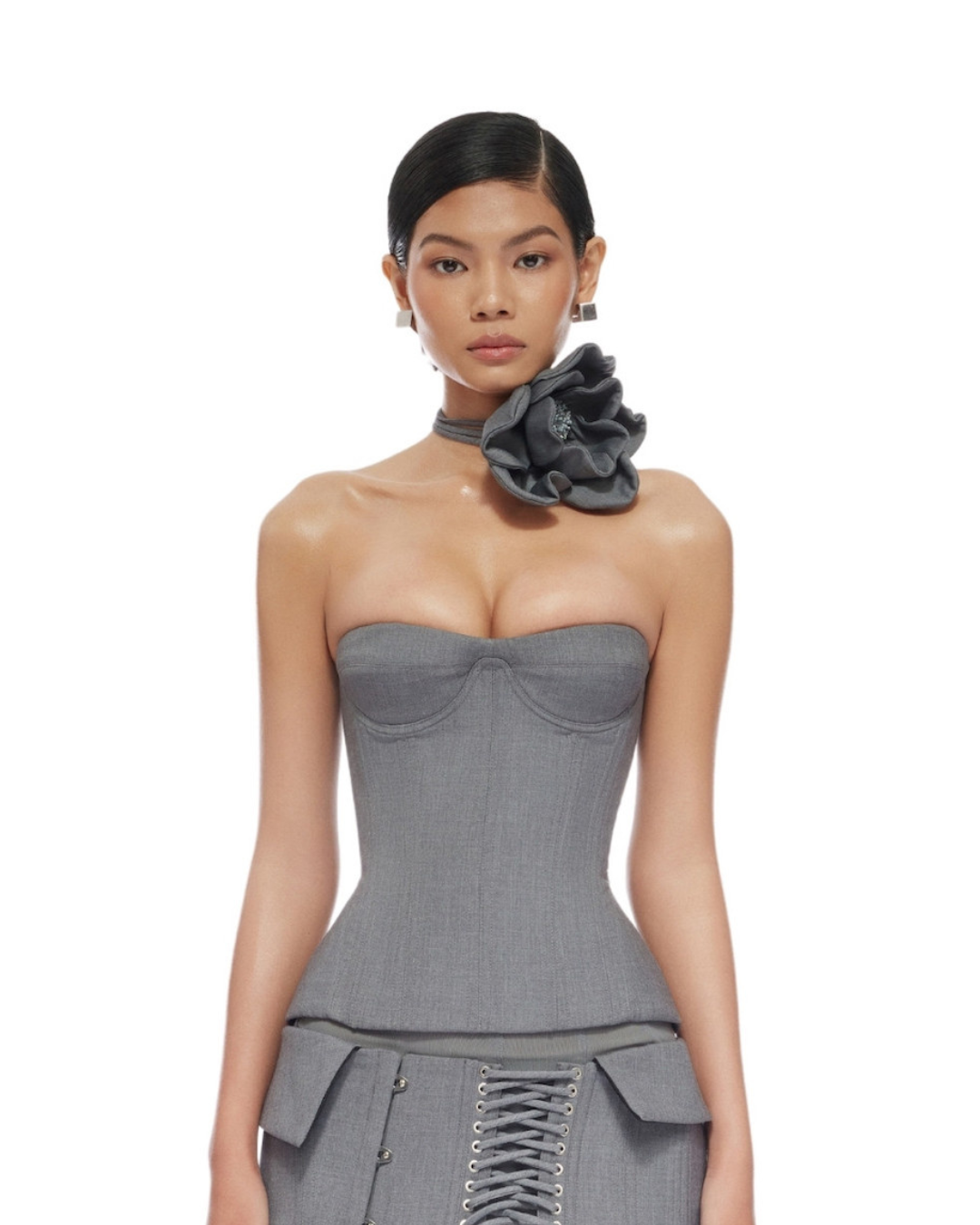 This corset is designed for cup sizes B and below, offering a flattering, supportive fit. If you have any sizing concerns, please consult with our staff for assistance.