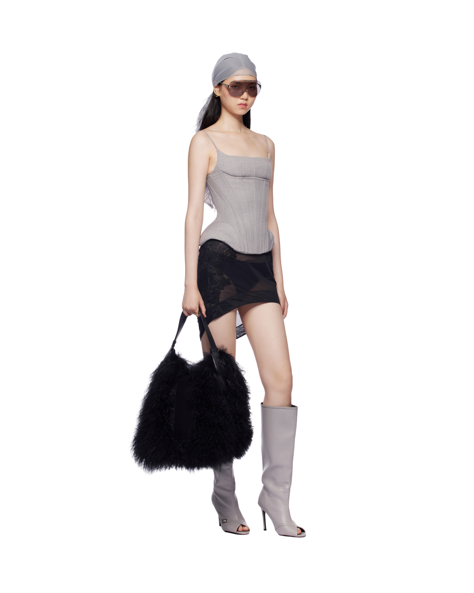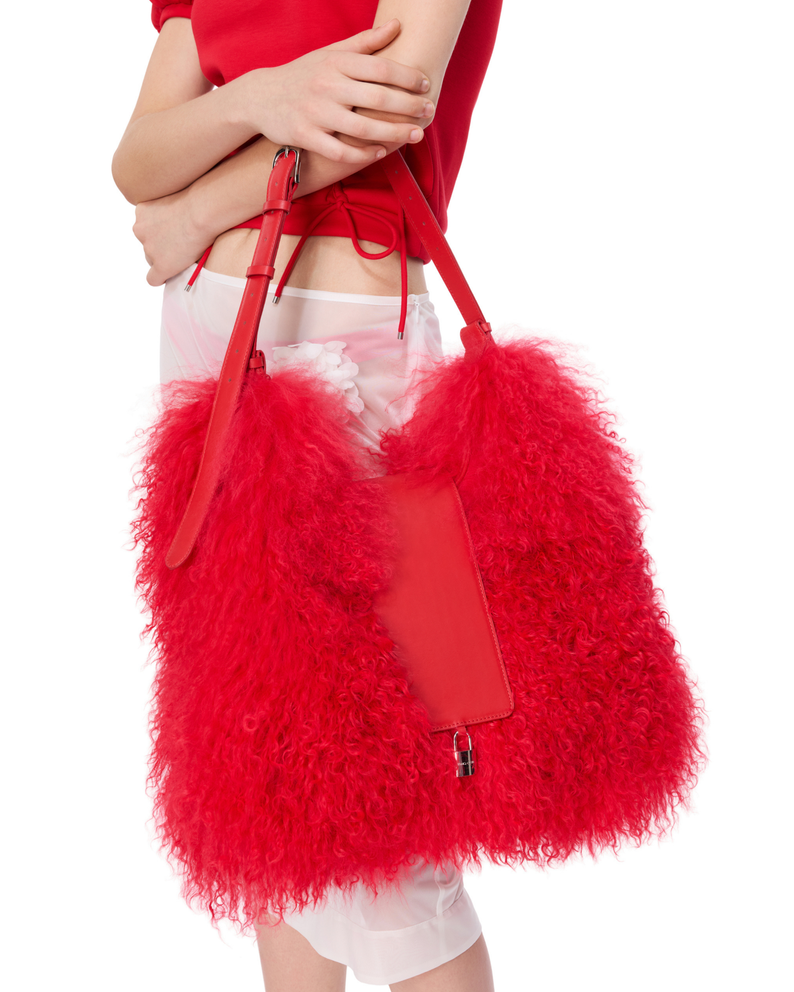 Mongolian fur shoulder bag