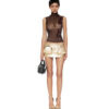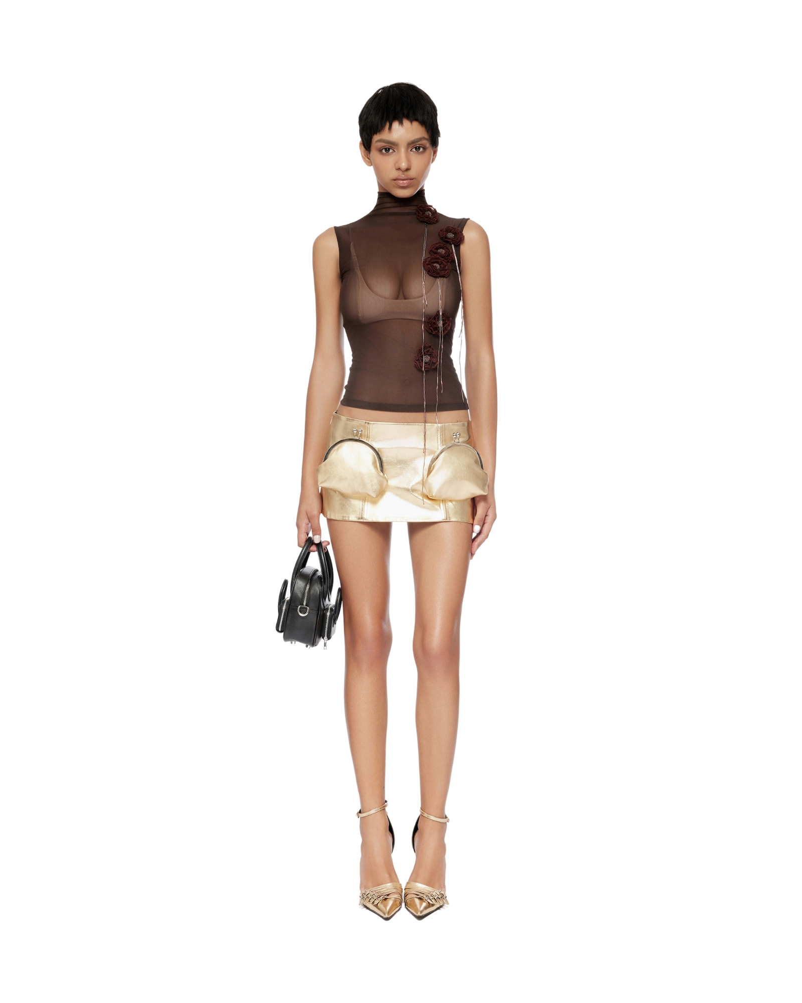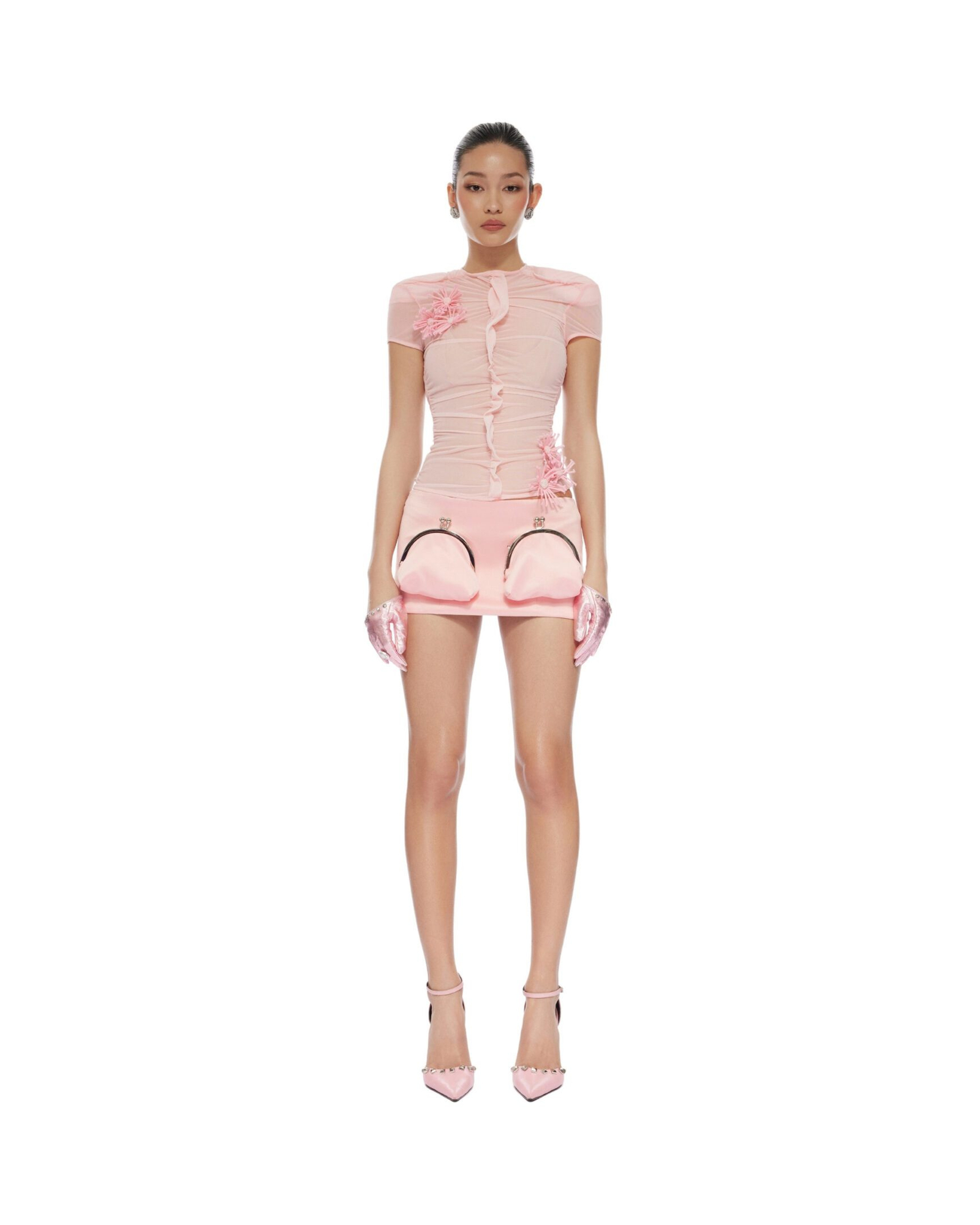 Kisslock miniskirt Kisslock pouches at front Dart at back Concealed zip at out-seam Full silk cotton lining