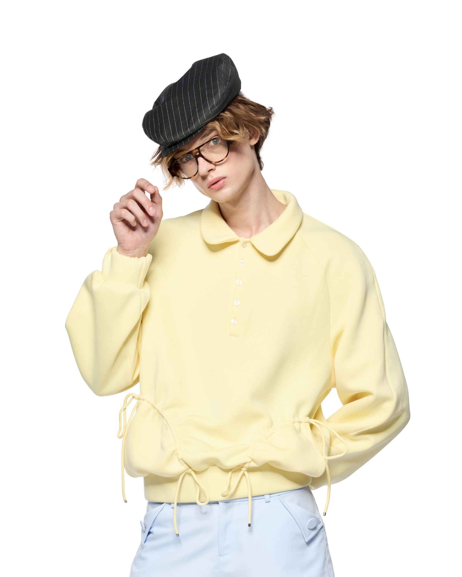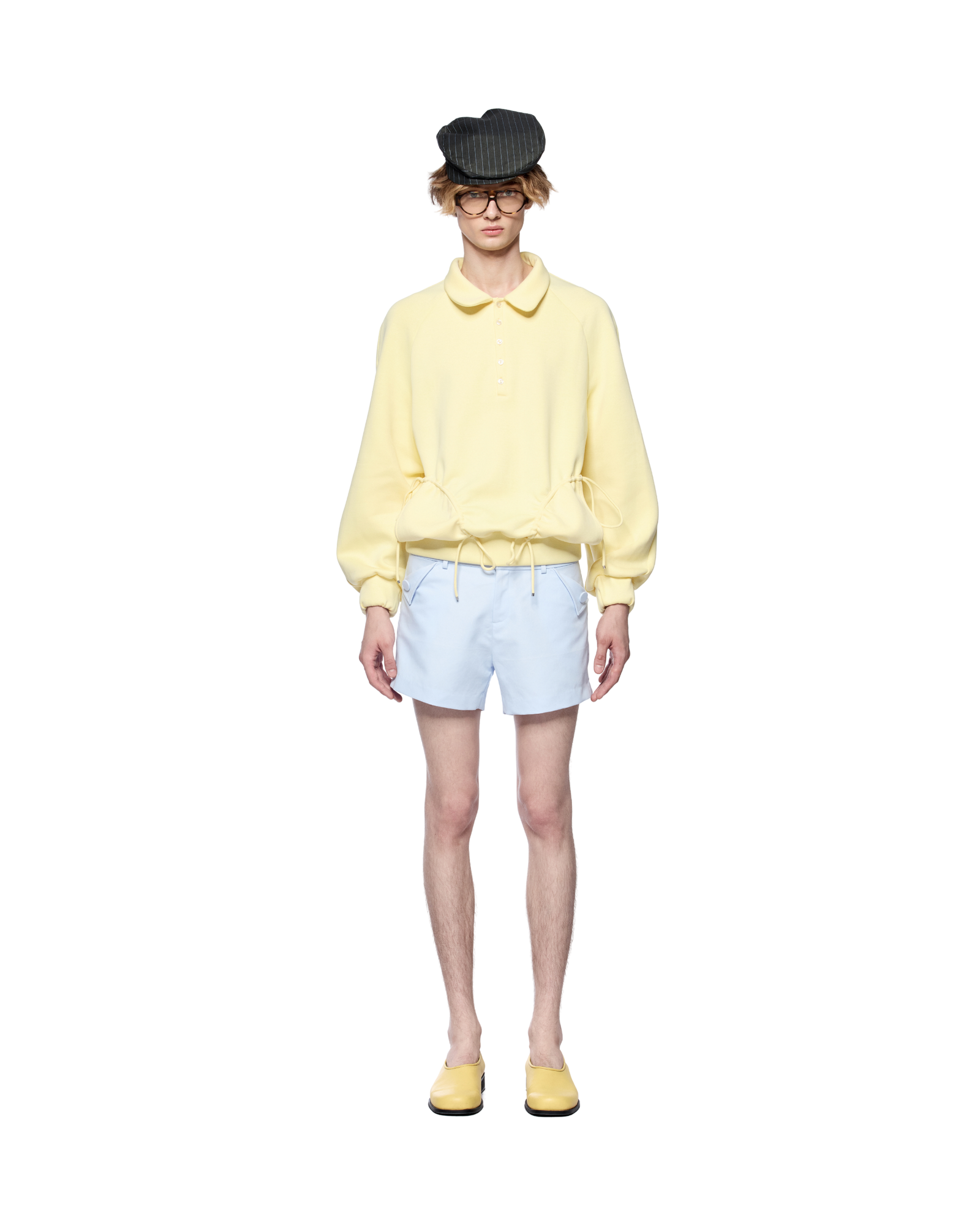 Long-sleeve polo with a fun Peter Pan collar. Works effortlessly with shorts or wide-leg pants. Thick, stretchy fabric that holds its shape