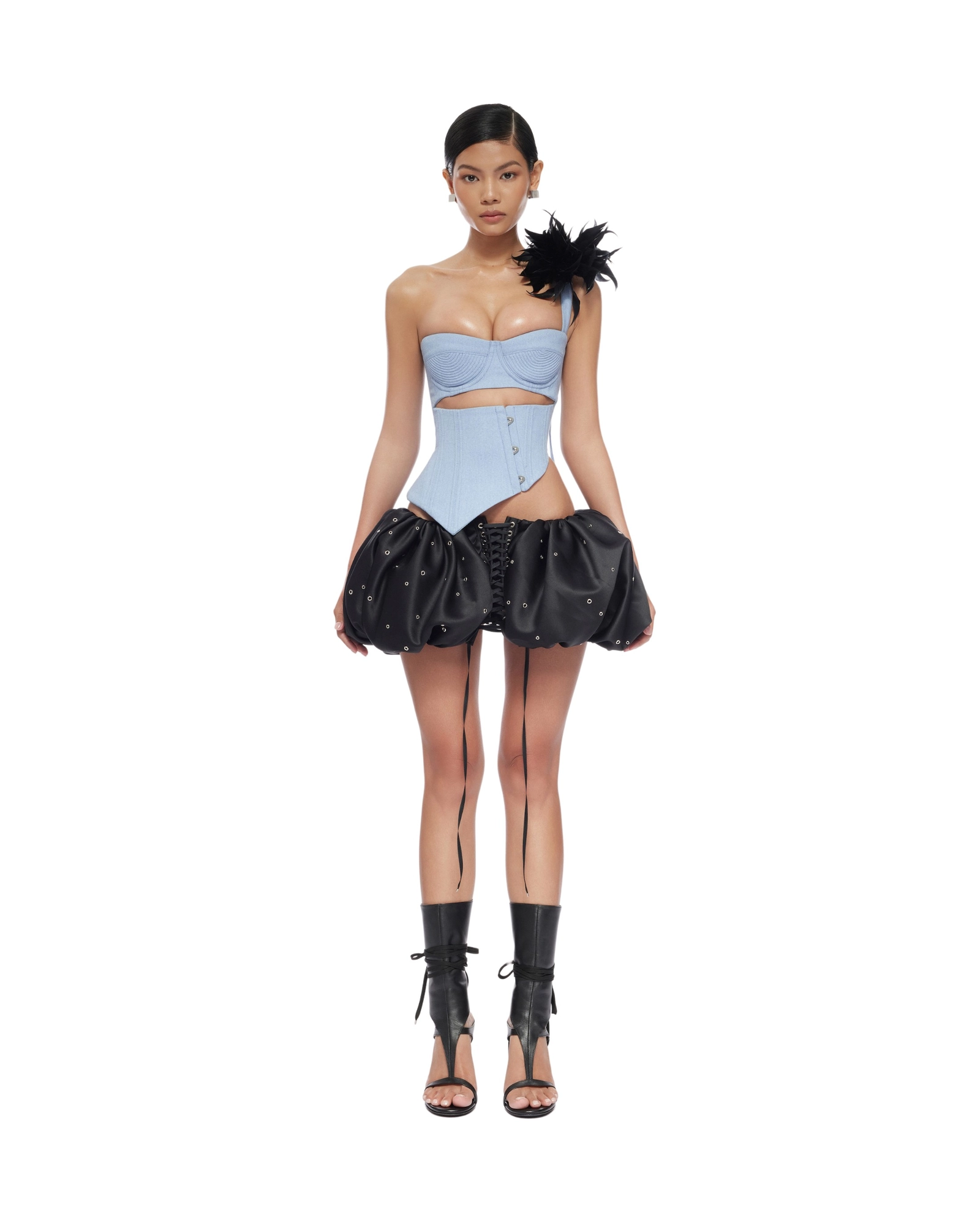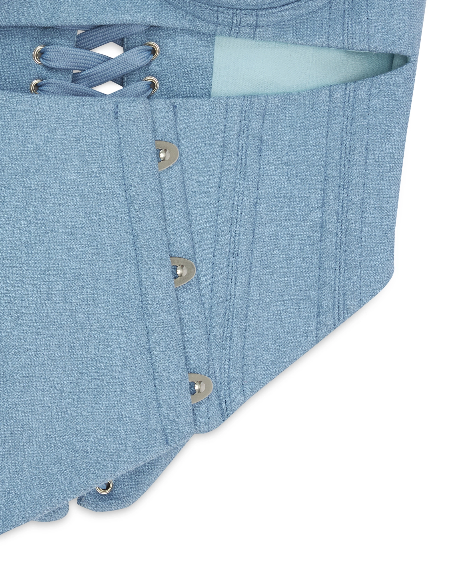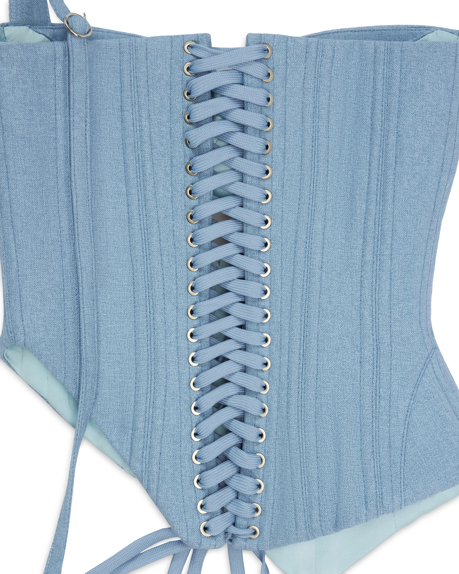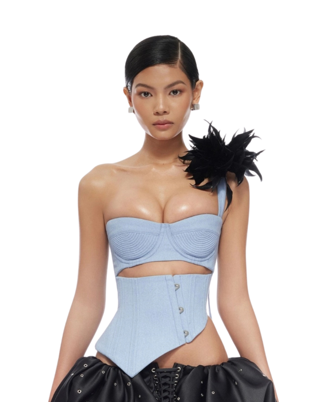 This corset is designed for cup sizes B and below, offering a flattering, supportive fit. If you have any sizing concerns, please consult with our staff for assistance.