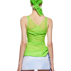 Light as air with a layered back crossing detail, this tank top balances coverage and allure. A gently scooped neckline reveals just enough, while the side zip ensures a sleek fit. Style it with midi skirts, bralettes, or mini shorts for effortless versatility.