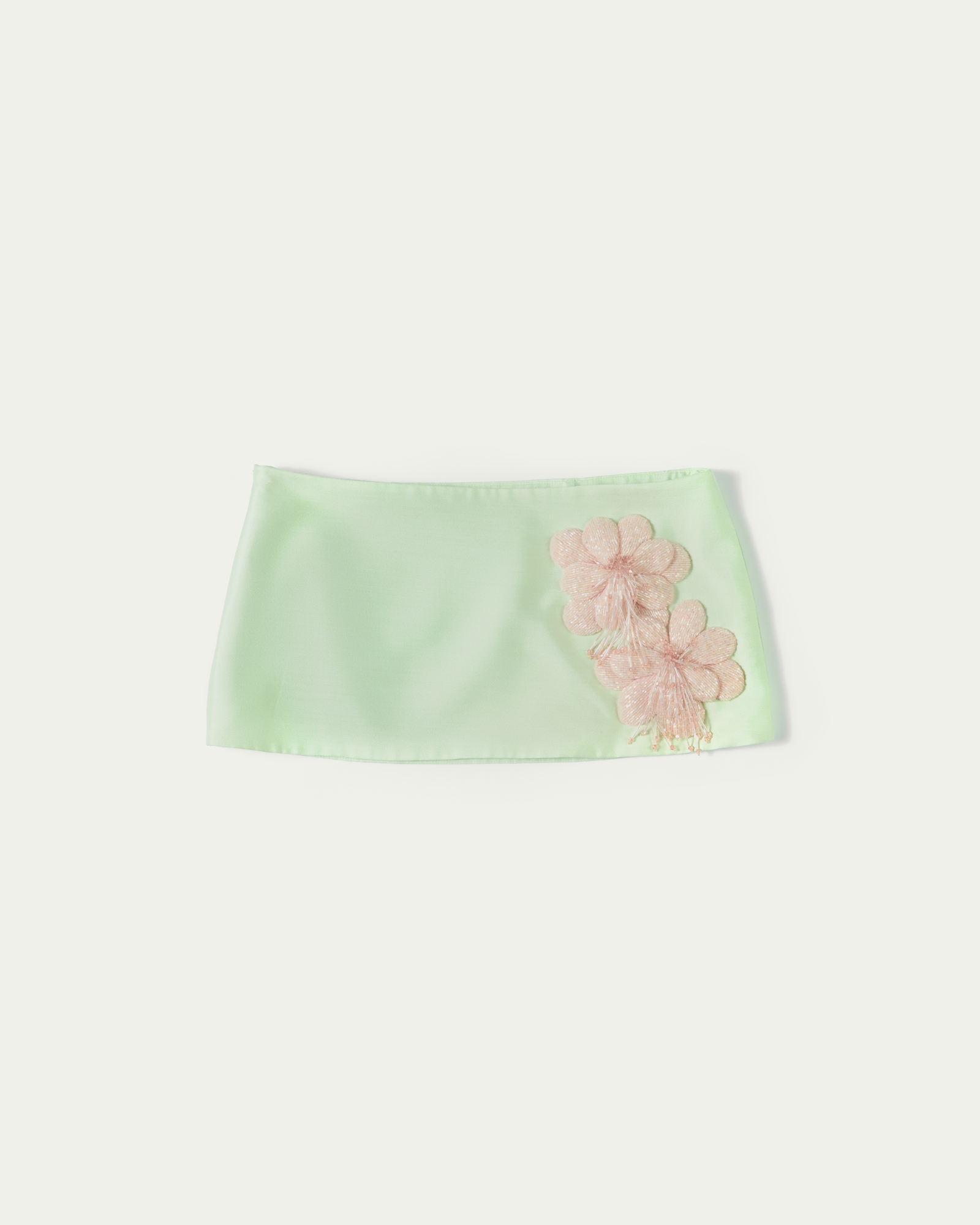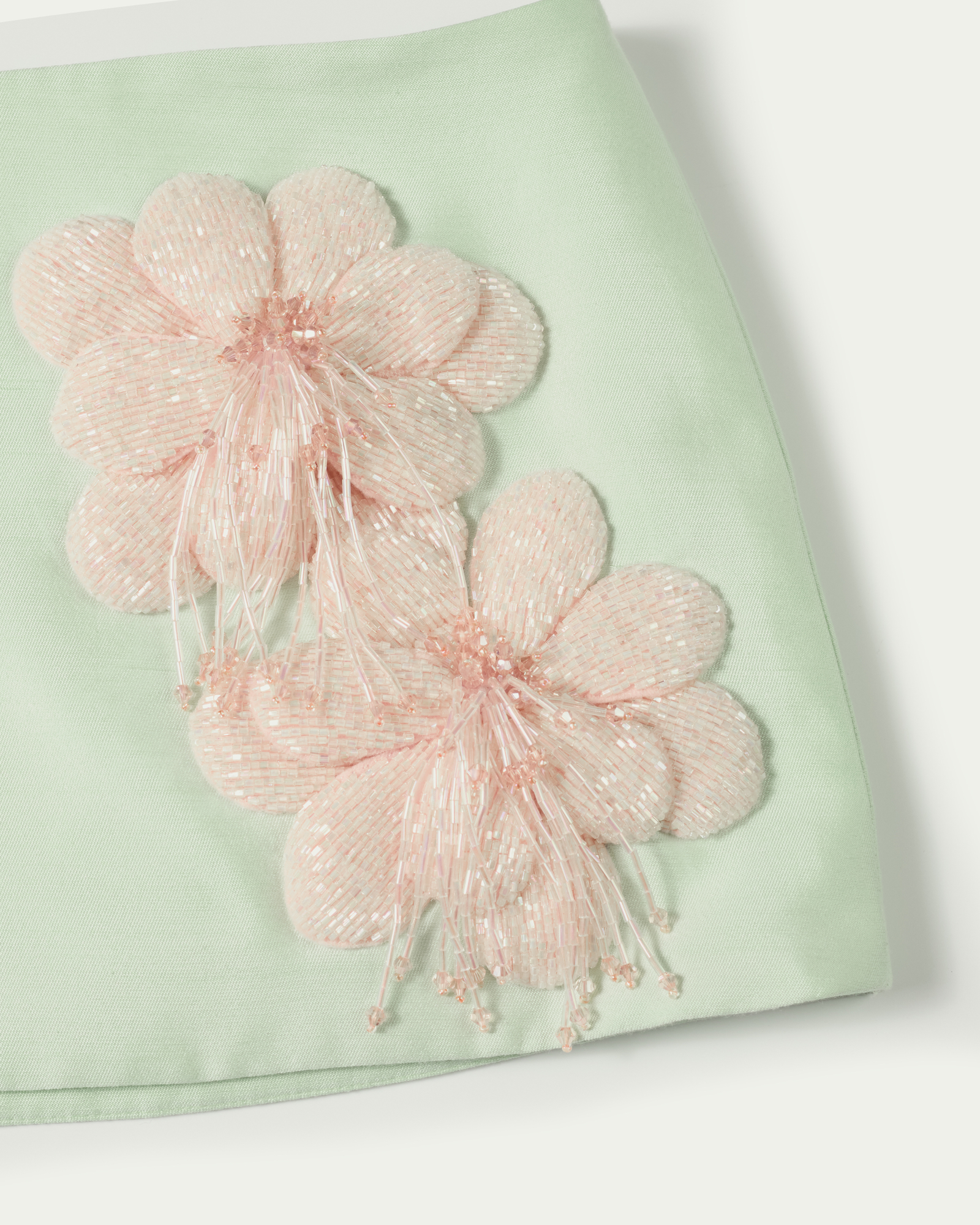 Hand-embroidered beaded floral trim at front