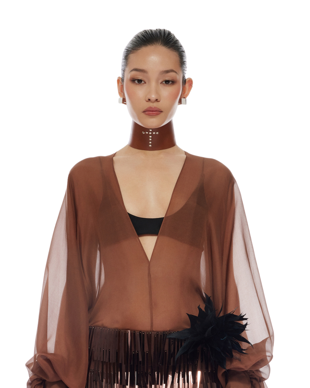Silk chiffon V-neck bat wings shirt Rolled hemline Three-button square cuff Unlined