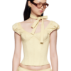 Designed with a babydoll silhouette, this corset balances structure and sweetness. Boning defines the waist, while light padding enhances the bust for a subtle lift. Puffed cap sleeves soften the look creating a playful yet refined finish. Pair it with mini shorts, a tailored mini skirt, a flowing midi skirt, or fitted capri pants for a versatile styling range.