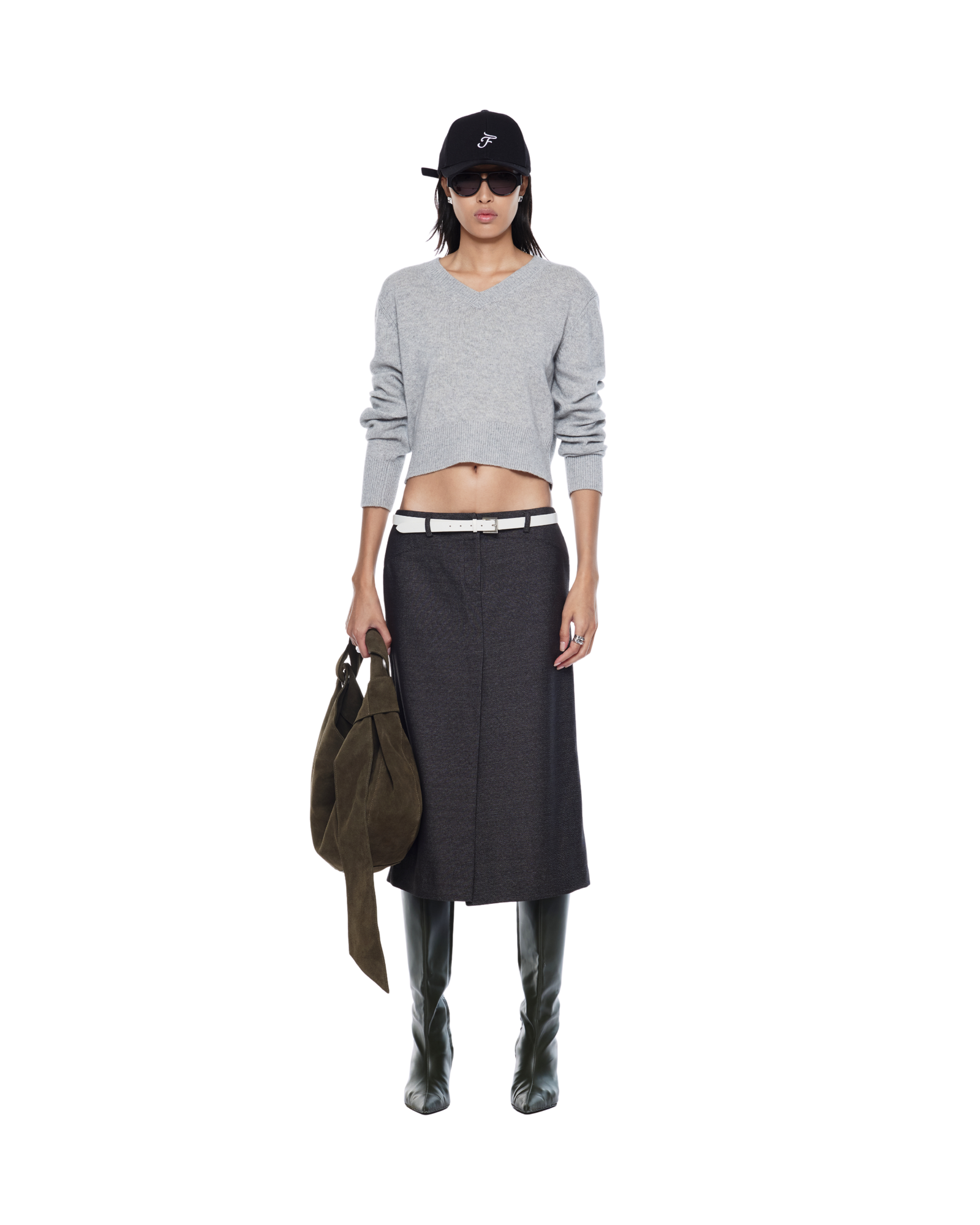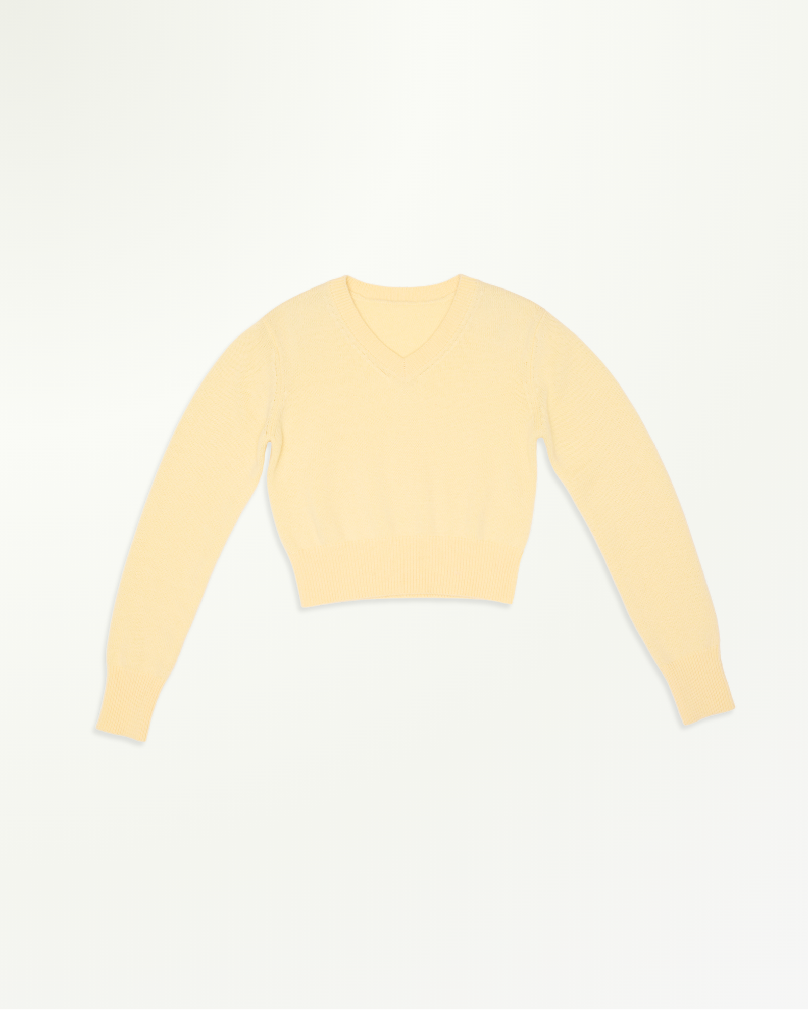 Soft cashmere-blend sweater features a cropped silhouette and a V-neckline for a refined touch. Pair it effortlessly with floral skirts, mini skirts, shirts, or tailored trousers to create a chic and versatile look.