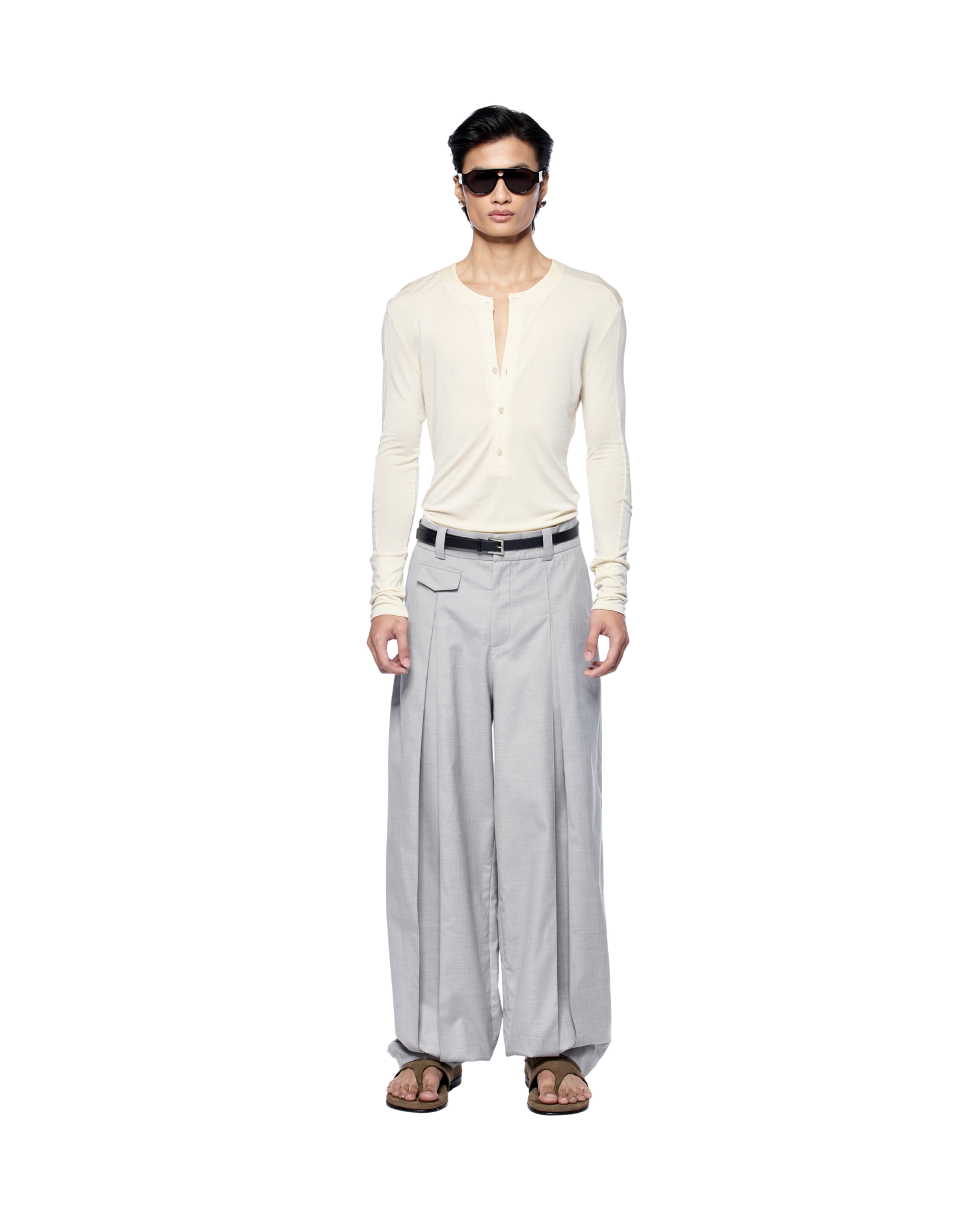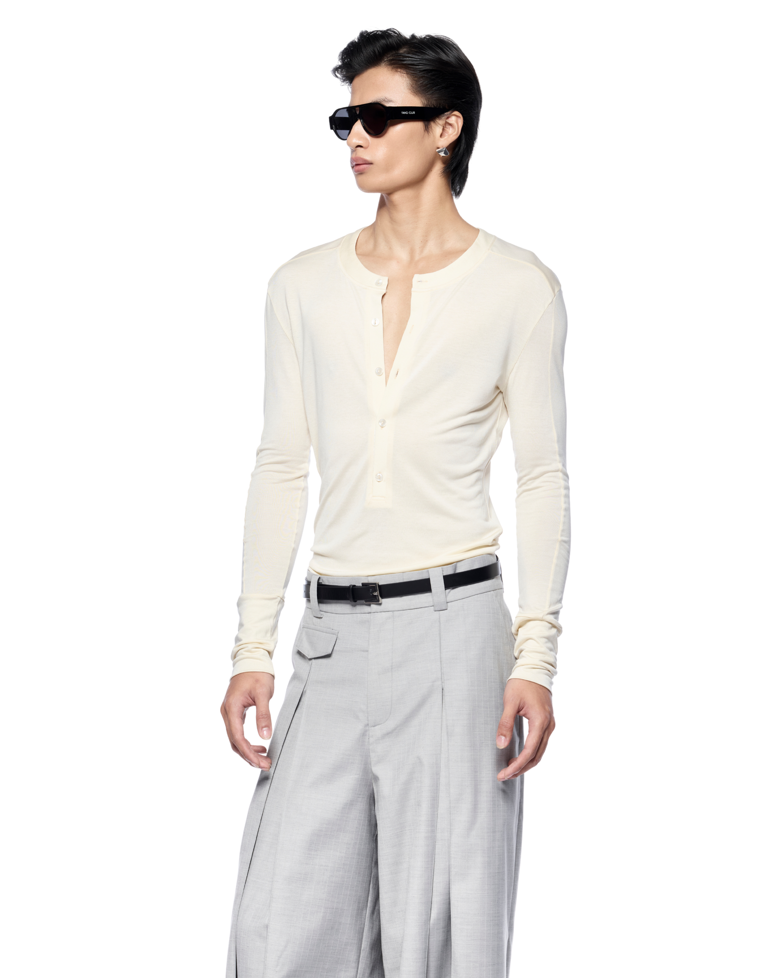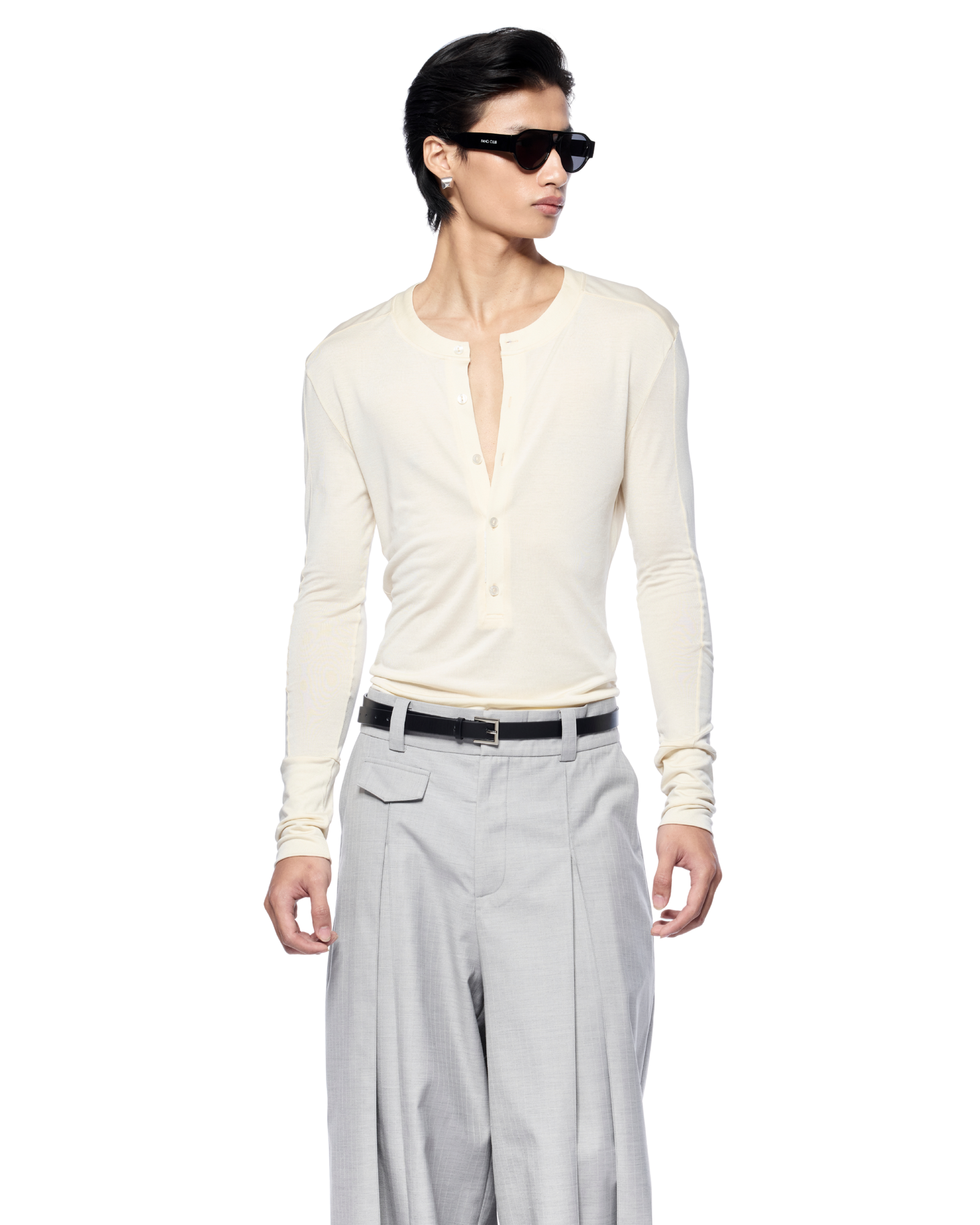 A long-sleeve jersey designed for a close fit with easy stretch, giving it a sleek second-skin feel. It works well with tailored trousers, straight or wide-leg pants, and looks great styled with a belt.