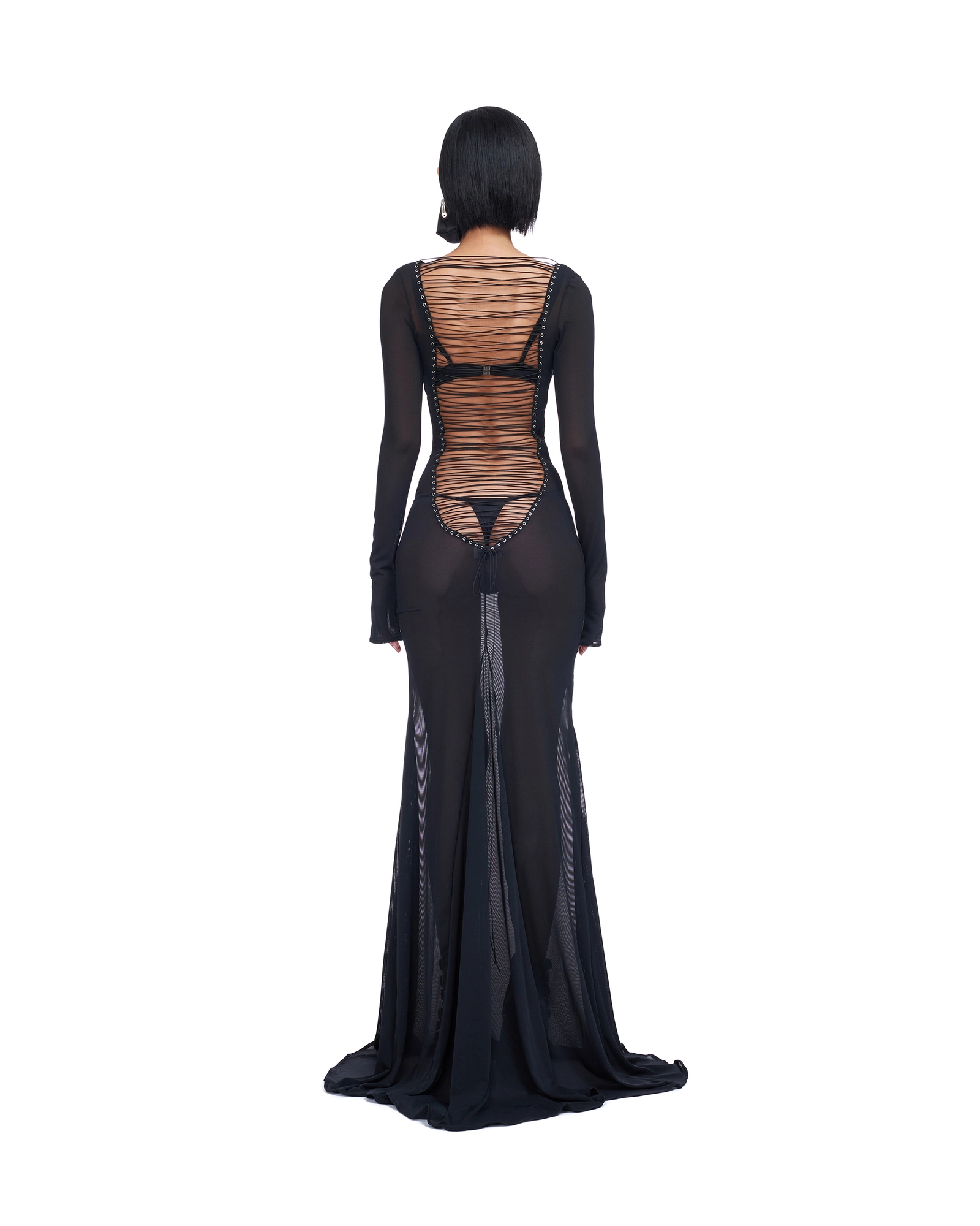 LONG SLEEVE BACKLESS DRESS WITH ADJUSTABLE LACE UP BACK