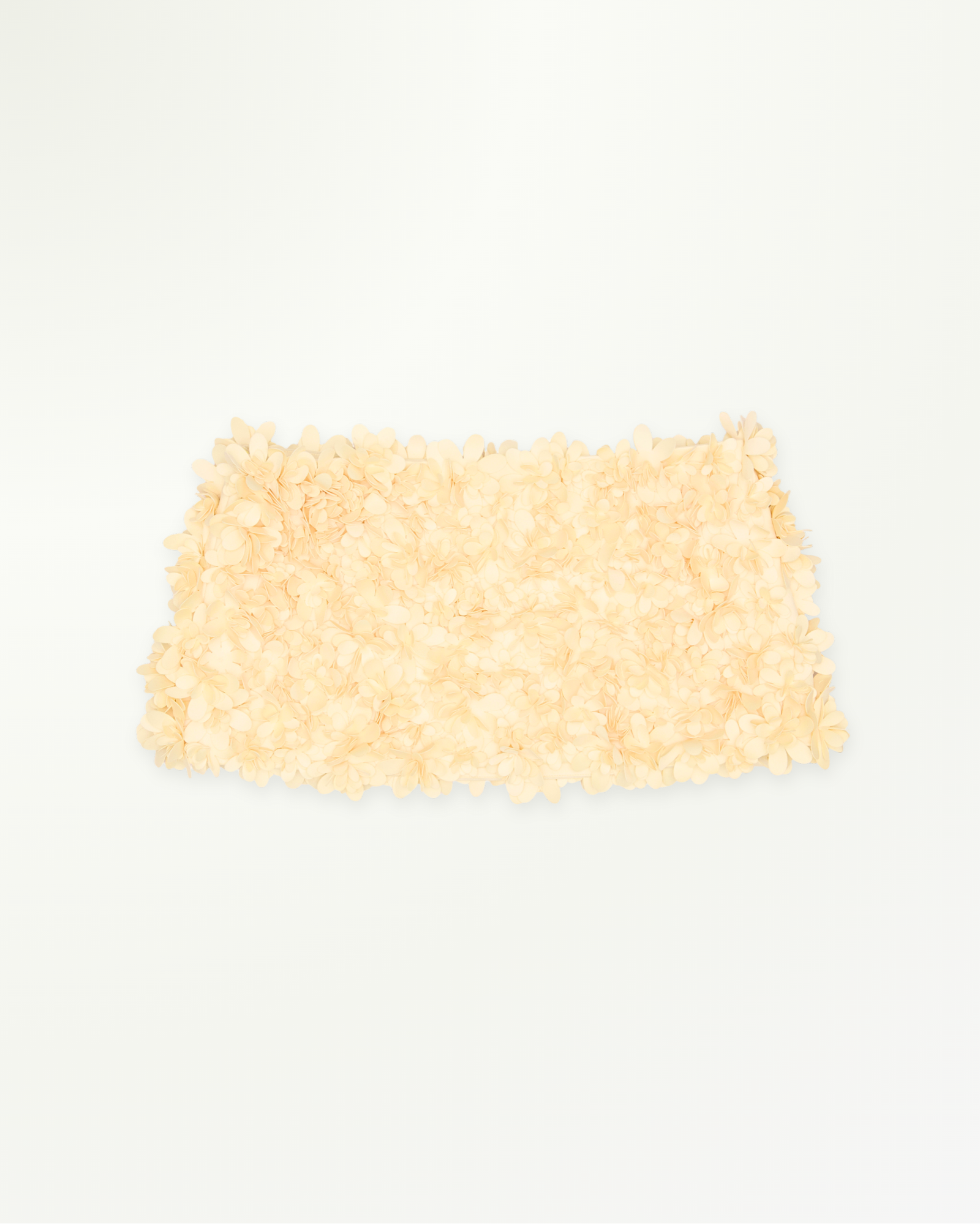 This hand-embroidered 3D mini skirt crafted meticulously over 10 hours to cover the entire piece. Style it with a matching-tone corset or layer a blouse over a fine knit for a delicate, contemporary look.