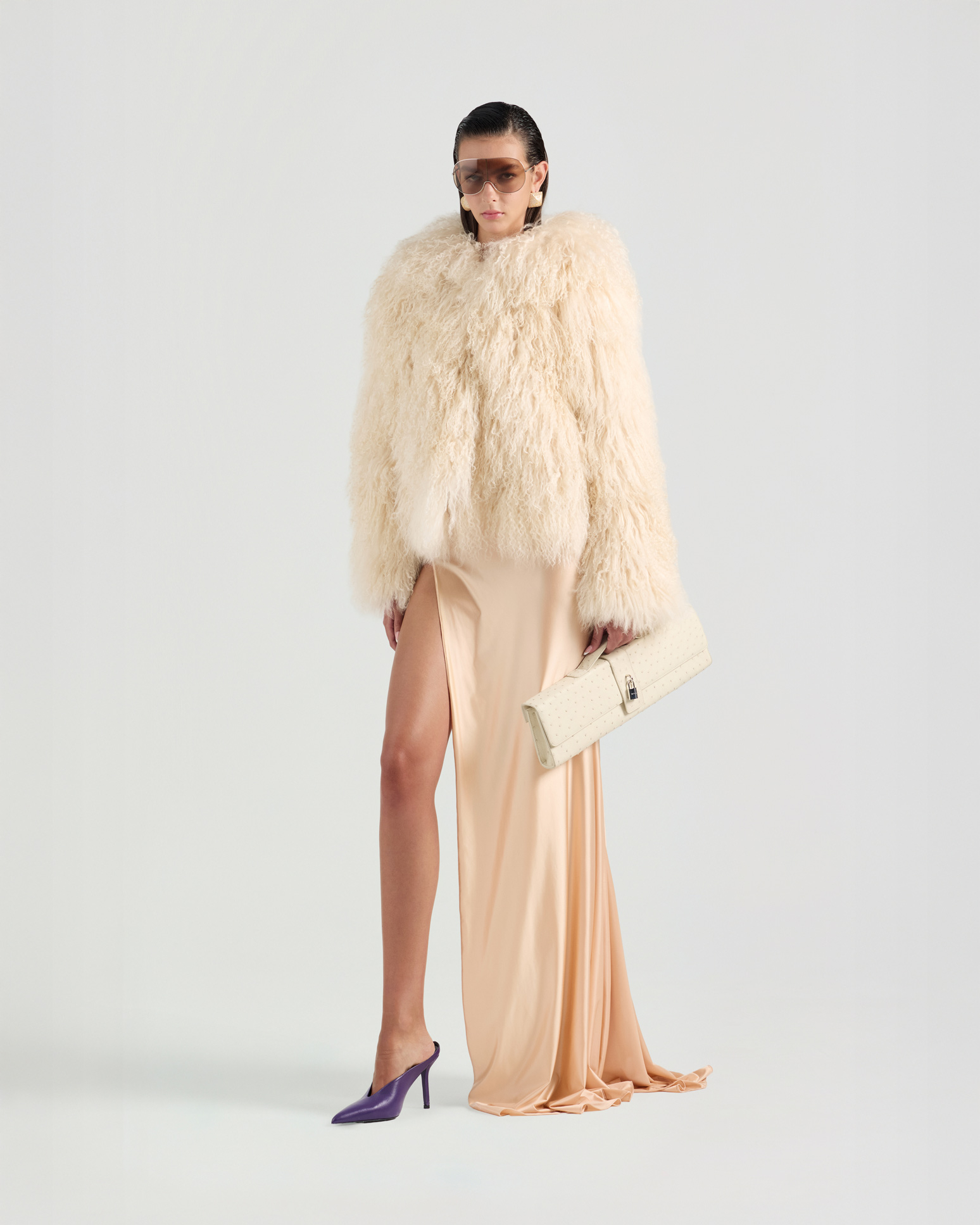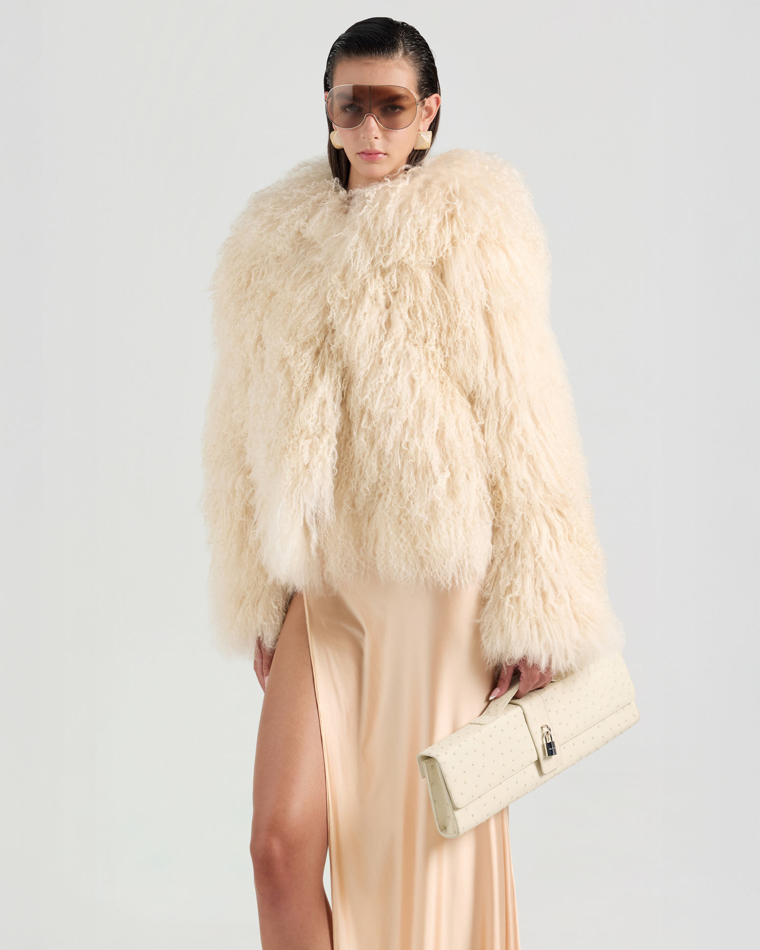 Featuring a plush faux-fur exterior and oversized hood, this long-sleeve coat is cut in a relaxed silhouette with soft volume and a modern, elevated feel.