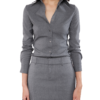 The fitted shirt features a modern pointed collar, long sleeves, and refined double-button cuffs. Effortlessly pair it with a midi skirt, tailored trousers, or a mini skirt to create an elegant and versatile look.