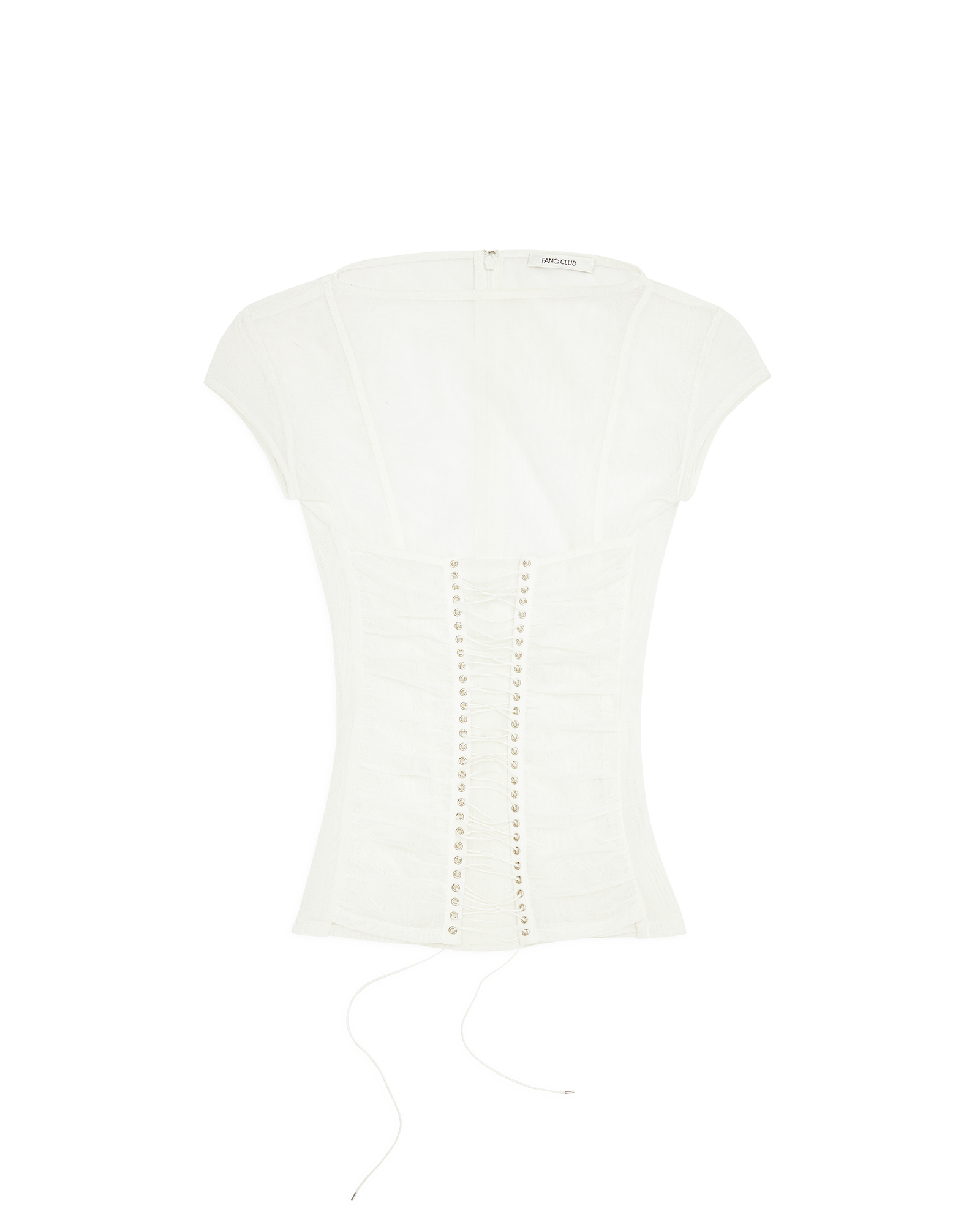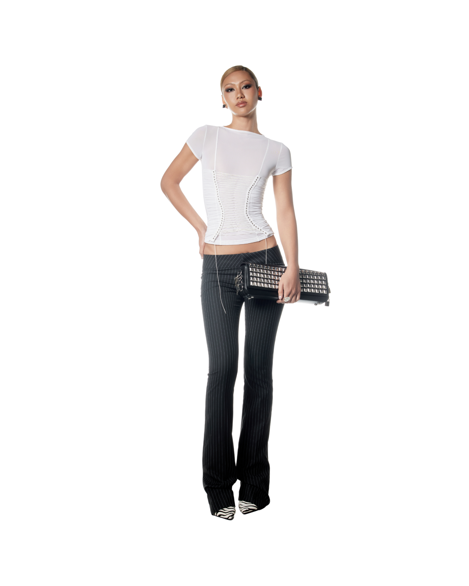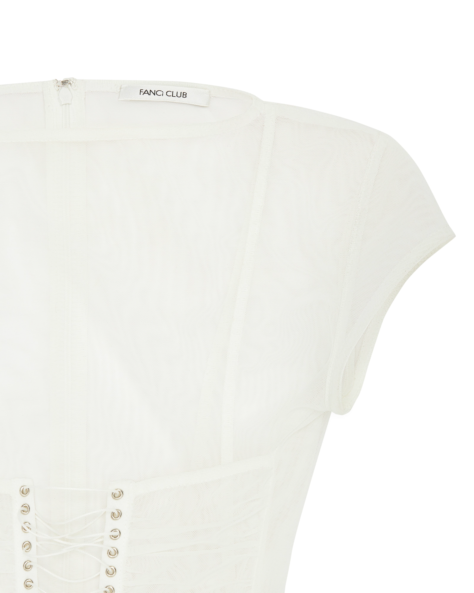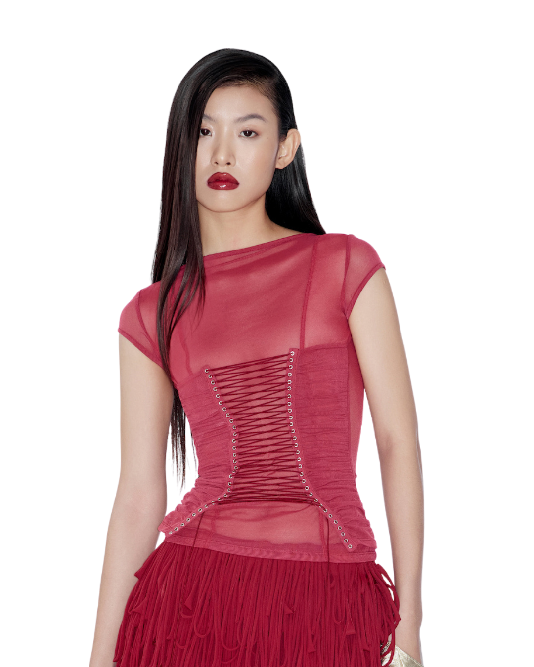 Semi-sheer stretch nylon mesh slim fit T-shirt
