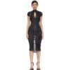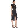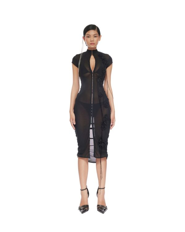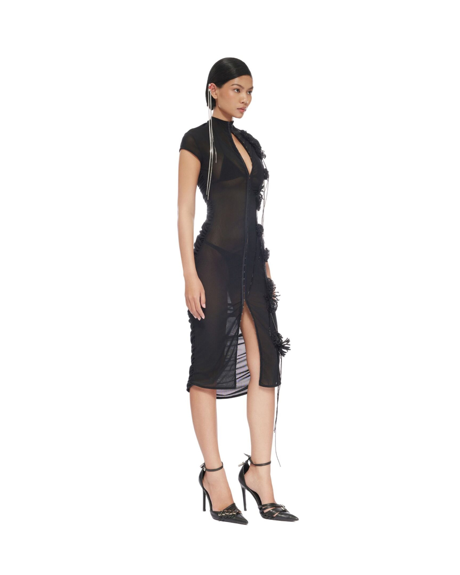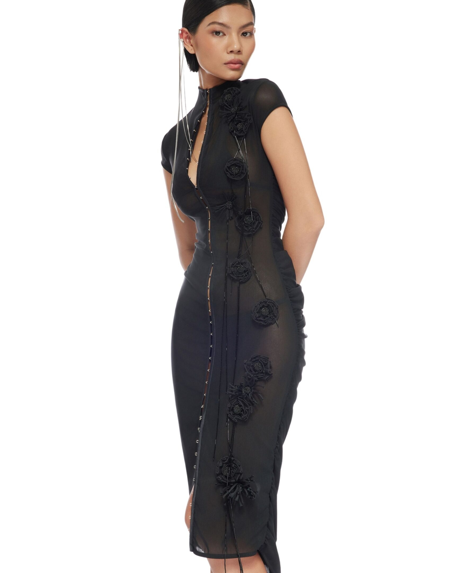 Semi-sheer stretch nylon mesh and hand embroidered flower midi dress